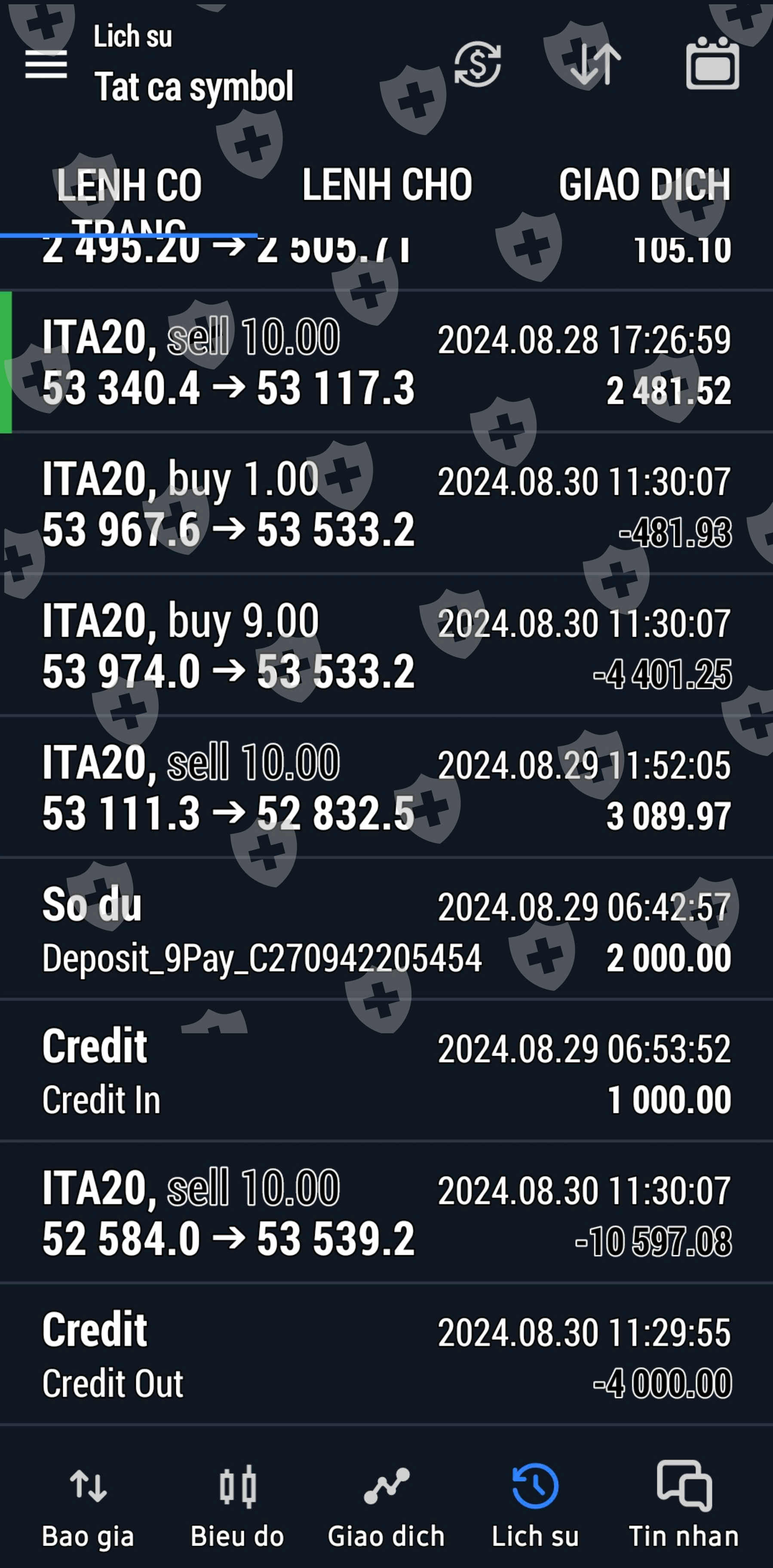 4. Chúng dùng mã riêng trên sàn để thao túng giá và làm cháy tài khoản của nạn nhân. Vd: mã ITA20