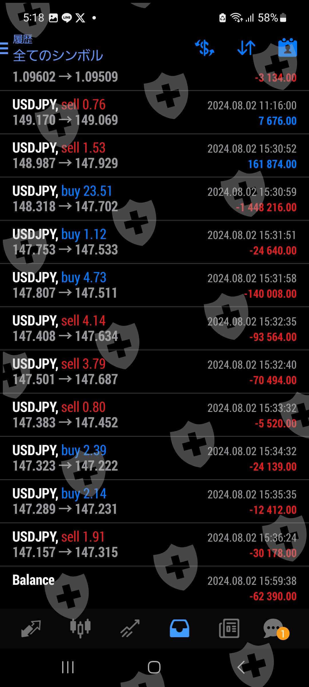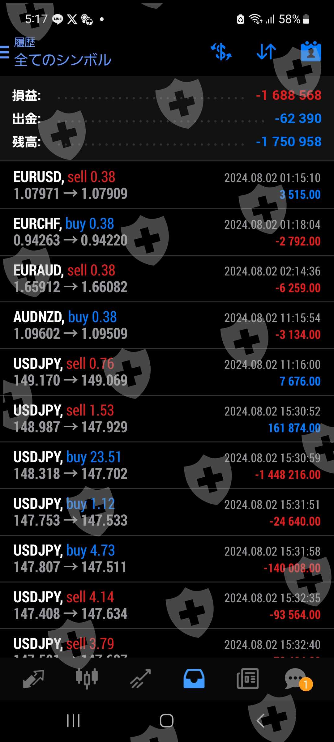 8月2日の2時間程度の間に十回以上のトレードが行われ、資金を失いました。