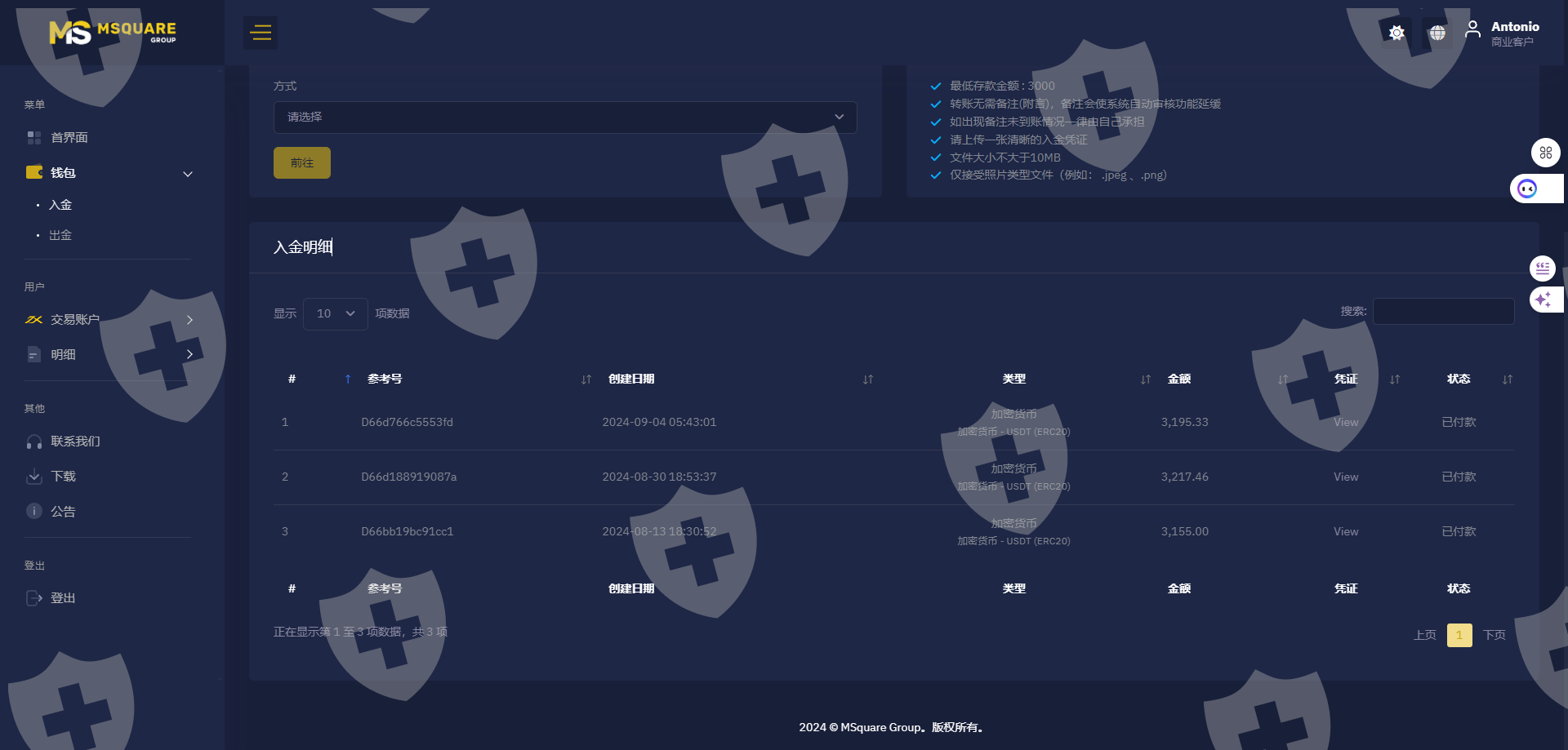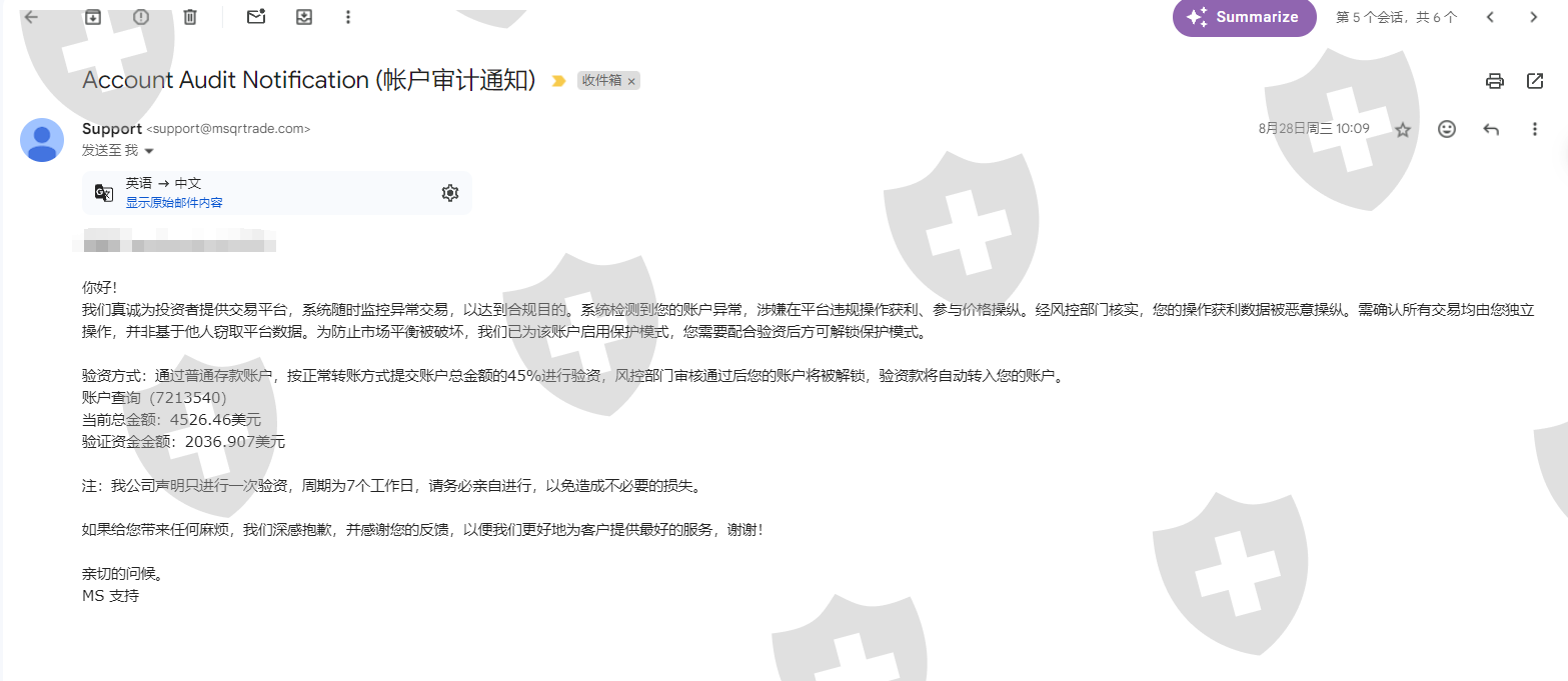 进入这平台入金3100usdt ,交易了2单盈利1500usdt 平台发邮件说恶意操纵账户冻结需要验资入金45% 需要入金2036 usdt 。我入了金验资完成需要出金填写出金地址账户又被冻结说我涉嫌洗钱又要验资40% 入金金额3097usdt 。再一次入金验资,验资通过我就出金账户金额 10939usdt 平台发邮件我需要交税28% 还要我继续入金金额3062usdt 要不然不能出金。这时候我发现自己被骗了平台根本就没想过让我出金