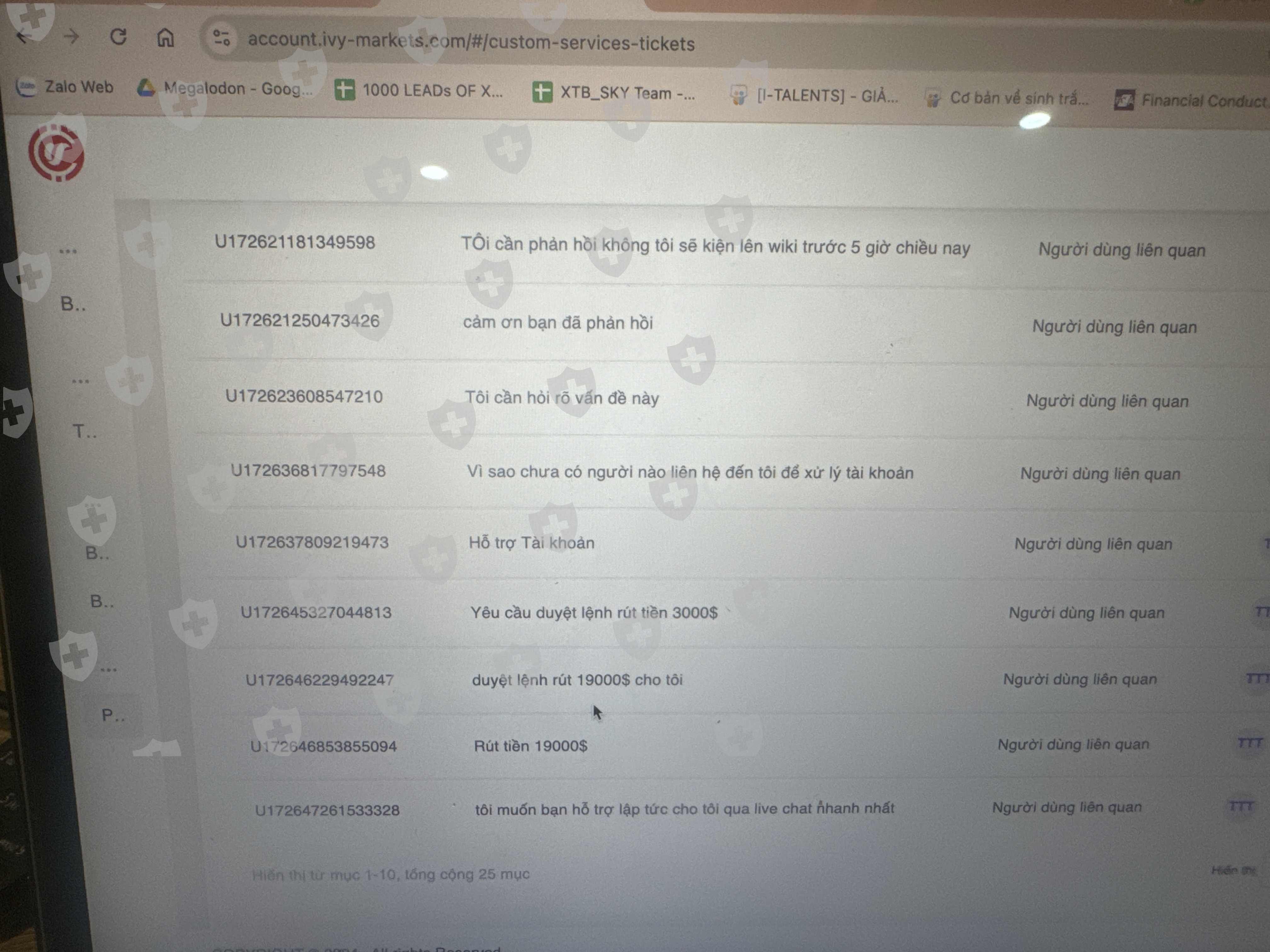Tôi là nhà đầu tư id883869 tôi có nạp vào 314000$ lãi 13k mà khi rút laiz 20k sàn không cho rút liên hệ qua gmail hay tạo phiếu đều không hỗ trợ và cứ làm áp lực tôi vào lệnh và kết hợp với một số ib nhắn qua tôi chứ ko làm việc trực tiếp vì sao lại để lộ thông tin tôi nhắn với sàn cho người khác mà không phải là tôi các bạn có thể thấy tôi tạo 30 phiếu mà ko 1 phiếu nào đc reply mà lại chụp cho người khác tôi thấy nghi vấn lừa đào và tôi chưa rút được vốn yêu anh em cẩn thận và tôi sẽ làm video cảnh cáo đăng lên cộng đồng