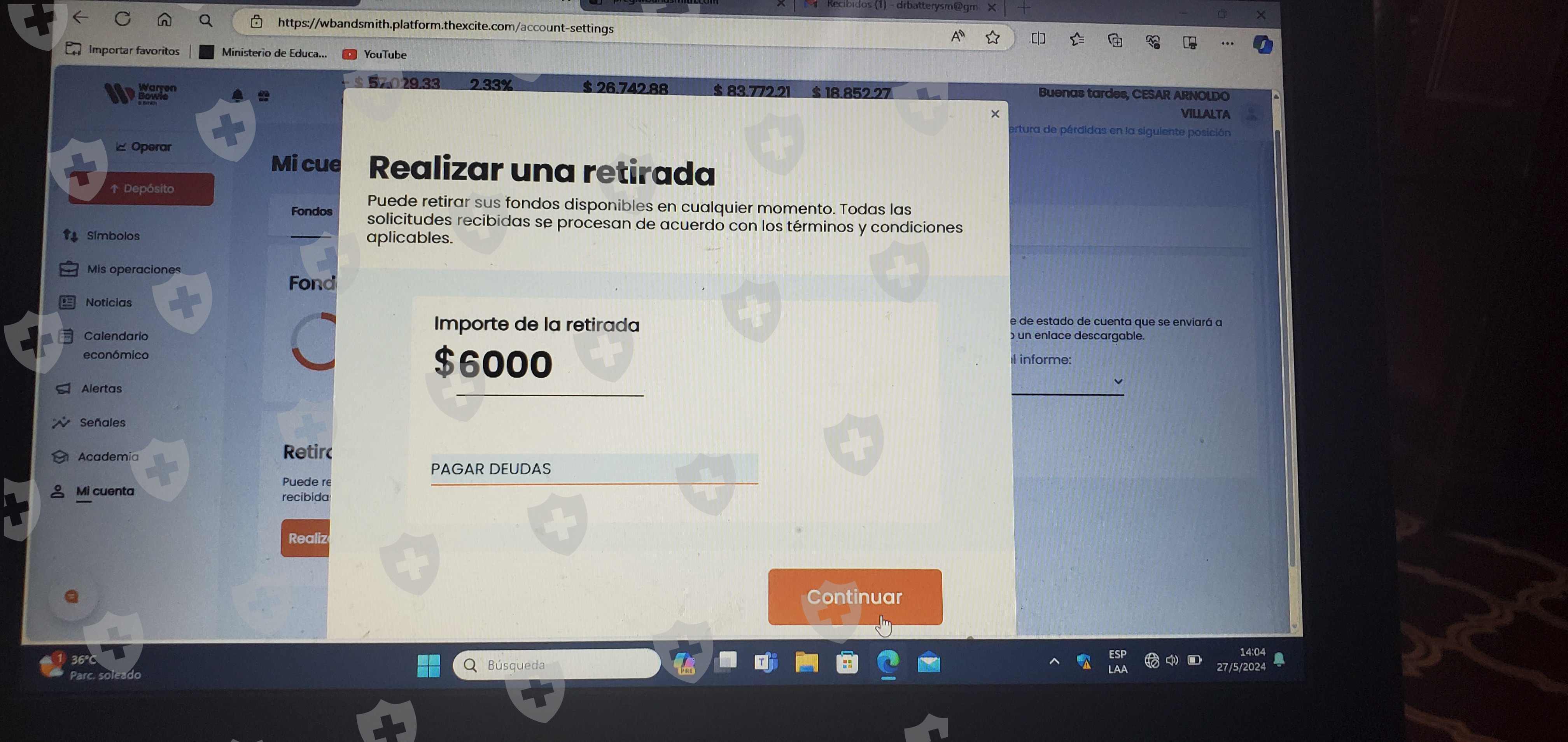 Soy de El Salvador y Me Estafaron, Inverti y al Principio iba bien Ganancias, luego lo Incitan a uno a Invertir y se Obtuvieron Ganancias, pero luego Creeria q esta Plataforma de Warren La Manipilan porque de la noche a la manana se Cae e Margen............y le meten a uno una presion para No Perder el Dinero......que uno Cae, y le cambian a uno de Broker cuando uno ya se les pone al brinco; y de las Ganancias Nunca dejan Retirar.................Es una bonita Inversion la que hice. Favor No Caigan con estas Ratas. Carlos Alcala, Jose Tellez, Javier Hainz..............