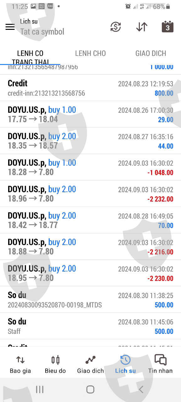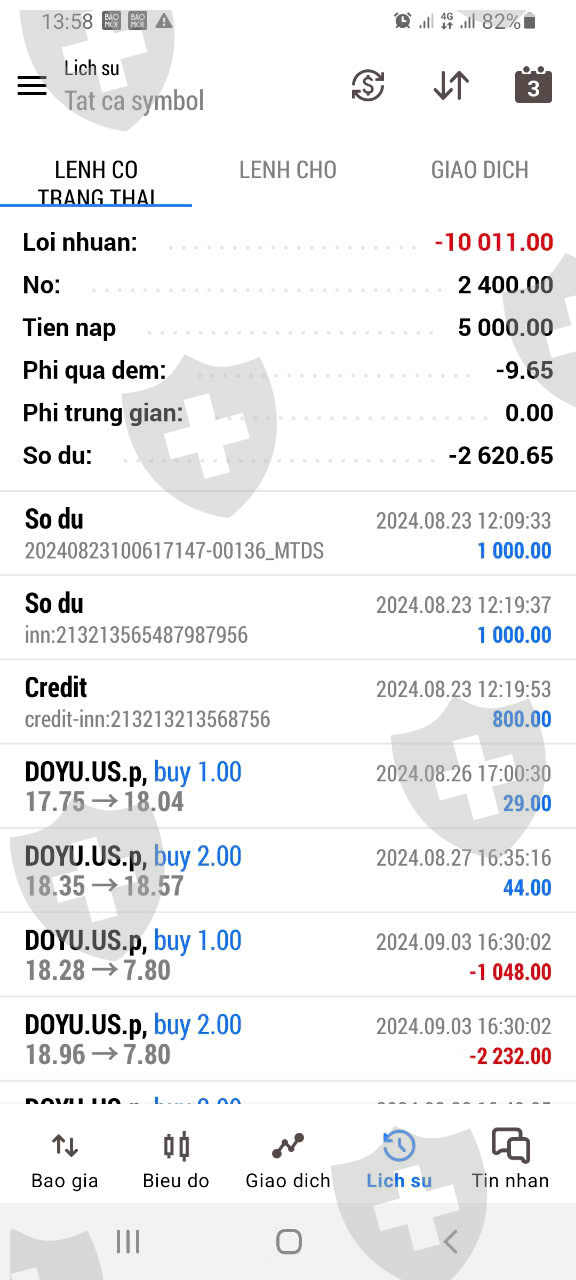 Ngày 23/8/2024, Tôi tham gia đầu tư tại sàn ivy markets LTD (tài khoản số 886444) với số vốn ban đầu là 2000$ để mua cổ phiếu doyu chi trả cổ tức vào ngày 3/9/2024. Ngày 30/8/2024, tôi nạp thêm 1000$ để mua tổng số 900 cổ phiếu Doyu. Đến ngày 3/9/2024 khi chưa nhận được cổ tức tôi đã nạp thêm 2000$ để bảo toàn vốn nhưng đến trước khi mở phiên Mỹ (20 giờ 30 phút ngày 3/9/2024) tôi vẫn không nhận được cổ tức, do đó tài khoản của tôi đã bị out và mất hết tiền đầu tư. Tôi đã nhiều lần hỏi nhân viên sàn nhưng nhân viên sàn nói là sàn không trả cổ tức trước phiên Mỹ trong khi đó các sàn khác đã nhận được cổ tức trước phiên Mỹ, nhân viên của sàn không hề có hỗ trợ hay thông tin gì cho nhà đầu tư. Các nhà đầu tư khác đang tham gia tại sàn ivy markets LTD cũng đã nhận được cổ tức nhưng tôi không được nhận. Đây là sự gian lận, chiếm đoạt tiền của nhà đầu tư. Vì vậy tôi đề nghị sàn ivy markets LTD trả ngay tiền cổ tức Doyu mà sàn đang giữ cho tôi.