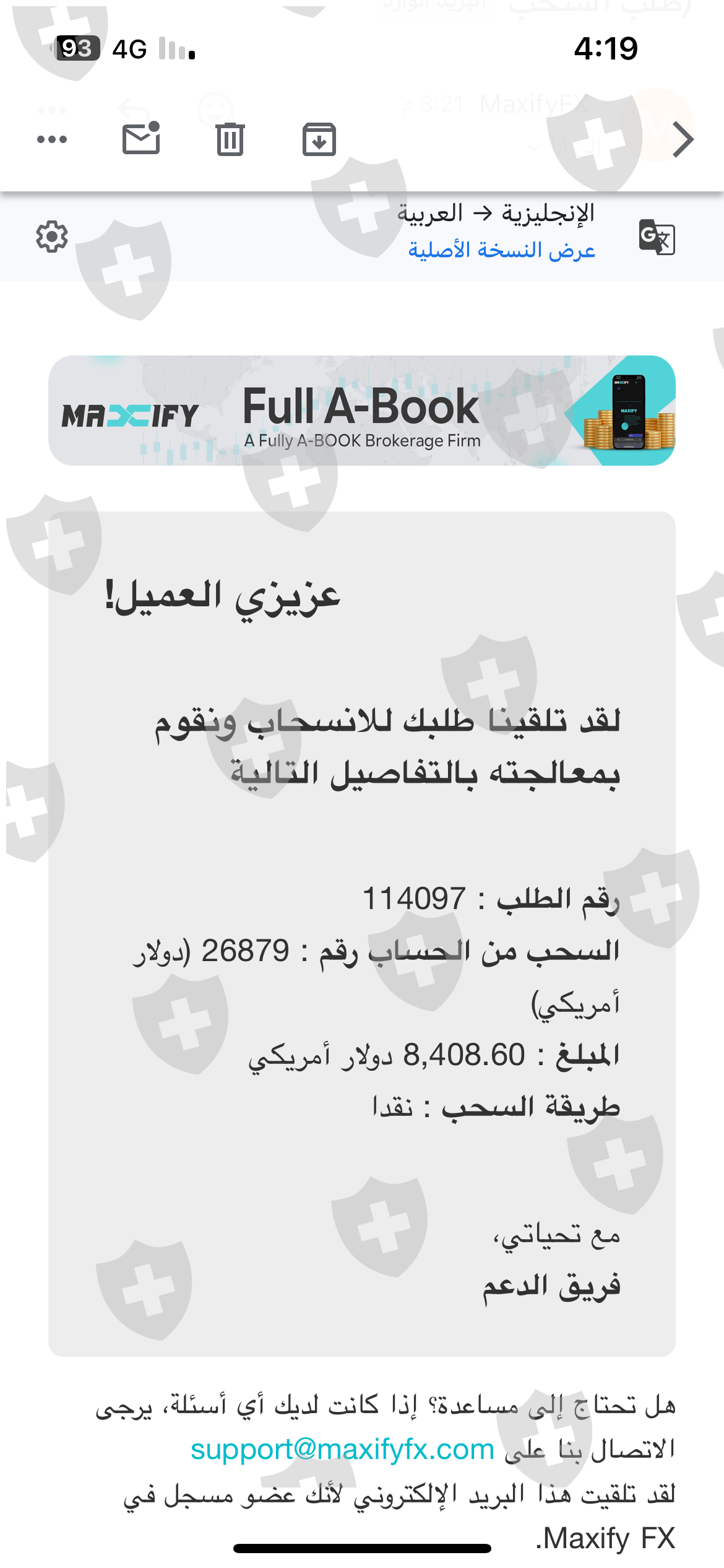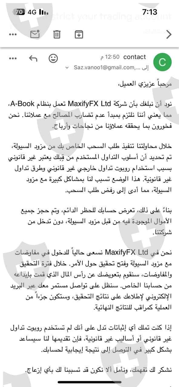 أود أن أحذركم من شركة Maxify، وهي وسيط احتيالي قام بسرقة مبلغ مالي قدره 8000 دولار أمريكي من عميل تحت وكالتي وايضآ قاموا بحضر وكالتي والادعاء انه عميل من عملائي خالف القوانين وذالك غير صحيح ابدا وقاموا بسرقة اموال الوكاله 7000$ ولدي الاثباتات على ذالك