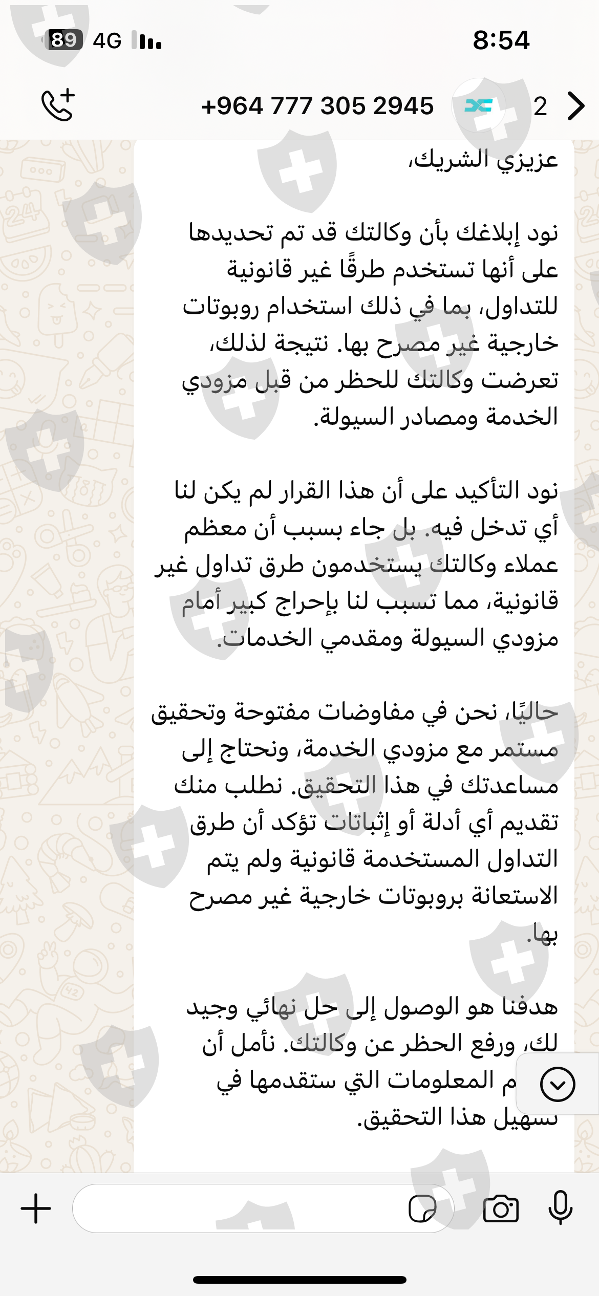 • محادثات موثقة مع موظفي الشركة توضح كافة تفاصيل الاحتيال.