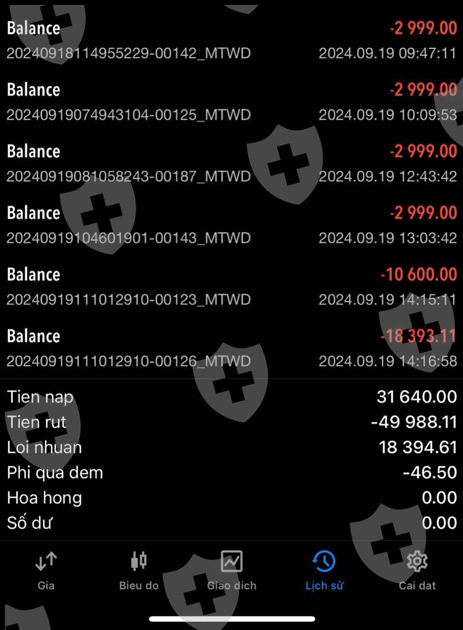 2024年9月9日,我多次提款,但楼层故意阻止我提款。2024年9月18日,我在wiki上举报,楼层给了我30%。 2024年9月19日,我再次举报支付我全部资金,每次3k。然而,由于我的资产被挪用,我的利润为 18,400 美元。清除我的帐户。 mt5已删除。我无法发送联系电子邮件。我投入了很多努力。我已经两周无法取款了,精神损失非常严重。现在,地板上挪用了我超过4亿越南盾的资产。请地板将其归还给我。感谢wiki的介入,不会伤害很多人。