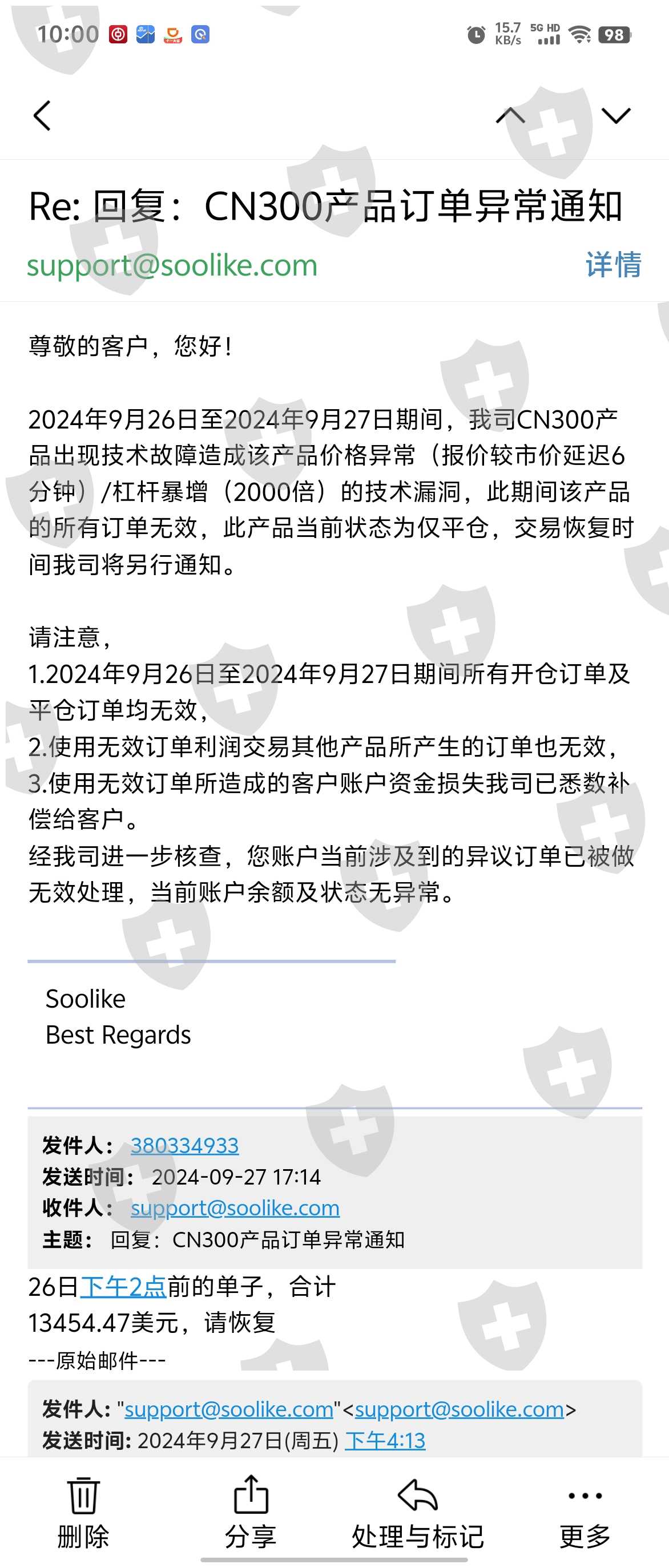 将盈利强制清仓,并且借系统异常的名义没收所有利润,连本金都给清零了。