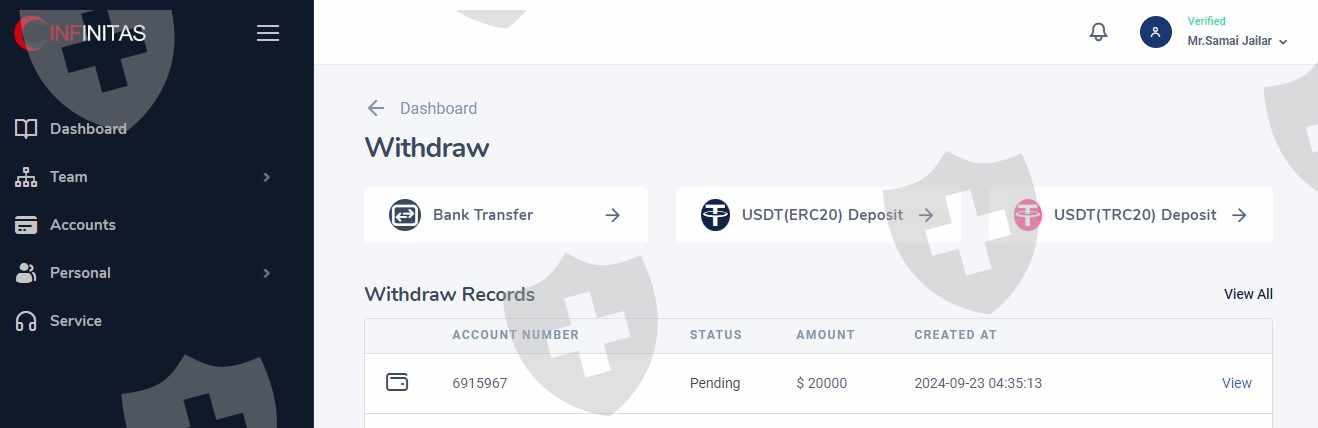 ฉันถอนเงินเมื่อวันที่ 23/09/2567 จำนวน 20000 us แต่โบรกเกอร์ไม่อนุมัติการถอน ฉันสอบถามแอดมิน แอดมินบ่ายเบี่ยง เอาแต่แจ้งว่า กำลังอยู่ในขั้นตอนการตรวจสอบของฝ่ายควบคุมความเสี่ยง ฉันถามว่าจะใช้เวลานานเท่าไหร่ แอดมินก็ไม่ตอบ จนวันนี้วันที่ 16/10/2567 ฉันสอบถามแอดมินไปอีก แอดมินก็ตอบเหมือนเดิม ใครก็ได้ช่วยแนะนำฉันหน่อยว่าฉันควรแจ้งตำรวจไซเบอร์ไหมเพราะฉันเริ่มคิดว่ามีความเสี่ยงที่จะถูกโบรกเกอร์ INFINITAS โกง