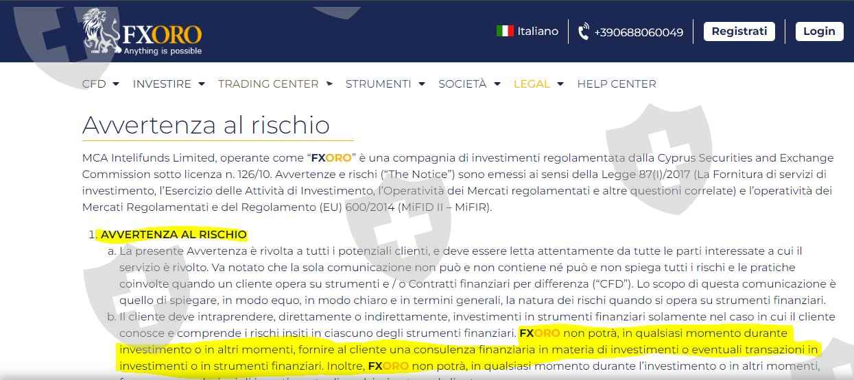 FXORO azienda scorretta