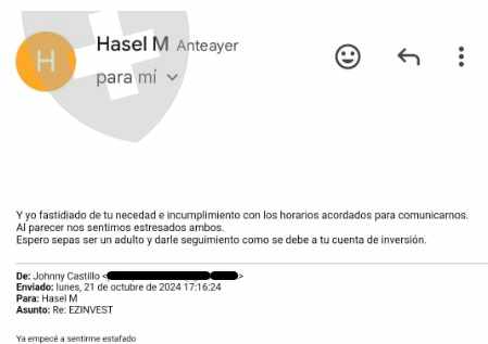 La siguiente es para informar que esta empresa es falsa, es puro scam. Empece en Julio de este año queriendo aprender a invertir y me dijeron que necesitaba 250 usd para comenzar, el cual, le deposite, luego me solicitaron 1000 usd y como esta promocionado como seguro, procedi a depositarle tal suma tambien, cosa de la que me arrepiento. hasta el sol de hoy, no he podido retirar, siempre me saltan con una mentira nueva. dicen que no puedo retirar si tengo ordenes abiertas, las cierro y solicito y me cancelan la solicitud de retiro y vuelven, ellos mismos a abrir ordenes sin mi autorizacion, e incluso han intentado sacar dinero de mi tarjeta. Me gustaria saber si hay algo que pueda hacer para recuperar mi inversion, ya que no he perdido, incluso en la pagina de ellos dice que tengo 2.6k dolares, cosa que se que es mentira. adjunto imagenes para ver si sirve de ayuda. Muchas veces incluso se expresan mal por la solicitud. aqui las pruebas.