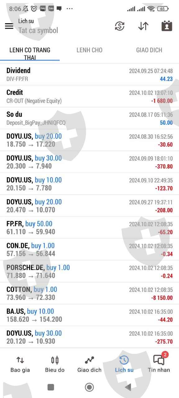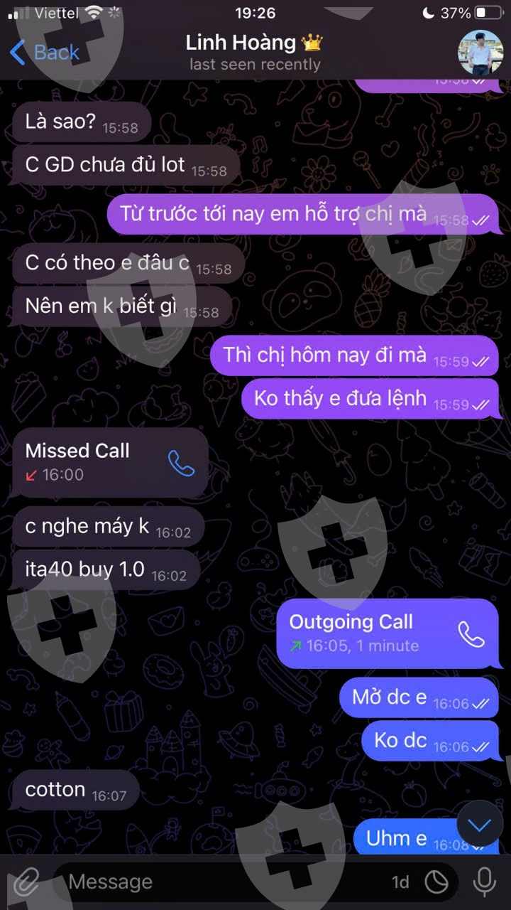 Tôi có mã ID 999370 tại sàn GTMX, theo nhóm sàn của Keily; tham gia được 1 tháng nhưng chỉ giao dịch cổ phiếu . sau 1 tháng tham gia tôi muốn gia hạn thêm bonus nhưng bạn hỗ trợ bảo tôi giao dịch chưa đủ lót . phải đi theo lệnh bạn hỗ trợ mới được gia hạn thêm Bonus. bạn hỗ trợ tôi là Hoàng Linh bên Telegram. ngày 2/10/ 2024. bạn hỗ trợ cho tôi đi lệnh Ita40; buy 1.0; nhưng tôi vào lệnh không được ; bạn đấy tiếp tục bảo tôi đi lệnh COTTON buy 1.0. tôi hỏi cổ phiếu à. bẠn ấy bảo “ Vâng”; bảo tôi mua 1 cổ để đủ lót gia hạn thêm bonus. Tôi vào lệnh bay luôn Tk 8150$. Tôi liên lạc bạn đấy không được, hỏi trưởng nhóm thì không trả lời, phó nhóm thì bảo liên hệ lại với bạn hỗ trợ mà cũng mất tích luôn. liên hệ Hotline, Mail sàn cũng không được.