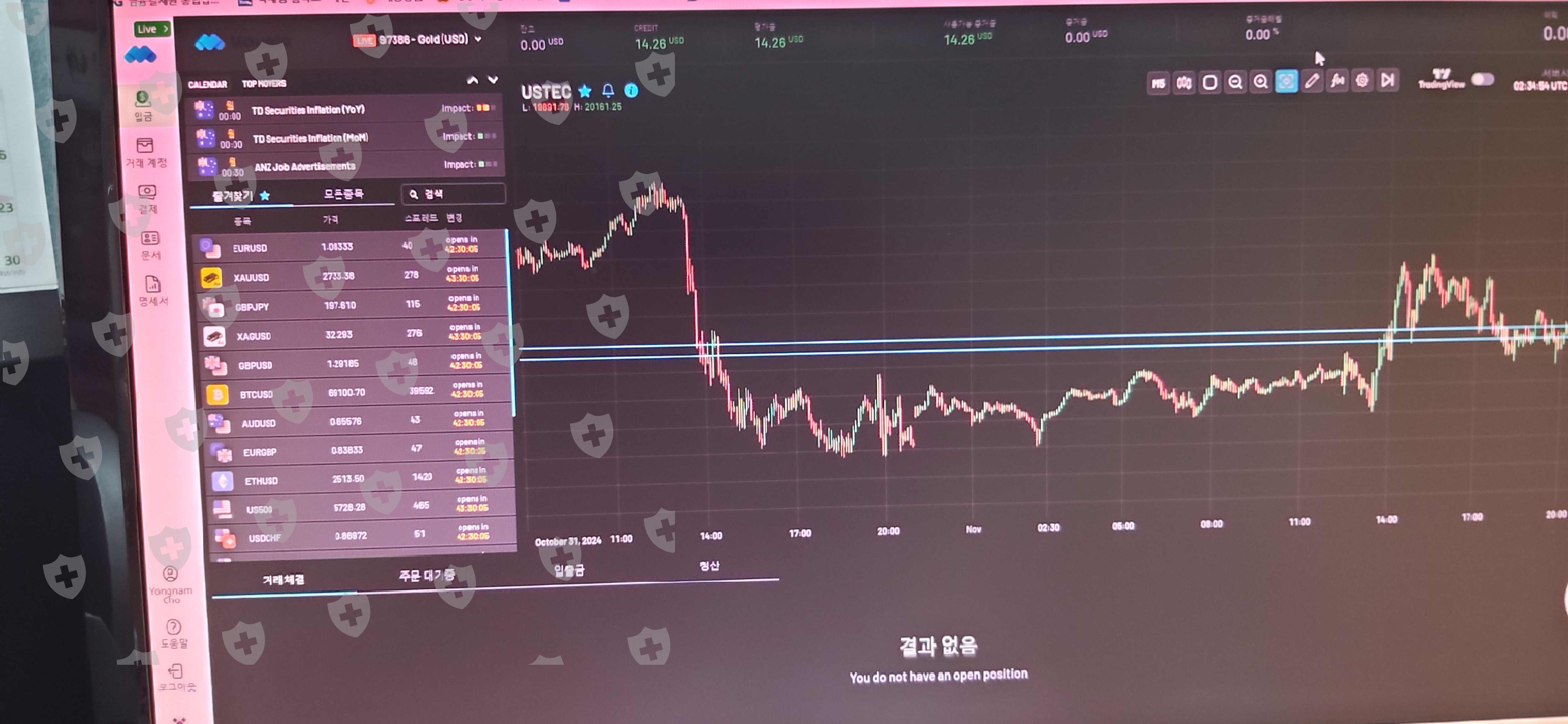 브로커관리자 권유로 거래체결종목은 AUDUSD(거래일 4일, 청산이익–3102), US500(거래일 18일, 청산이익–853), US30(거래일 21일, 청산이익–1768), NZDUSD(거래일 22일, 청산이익–719), XAGUSD(거래일 23일, 청산이익–2479), AUDUSD(거래일 23일, 청산이익–767), BRENT(거래일 29일, 청산이익–972), US500(거래일 30일, 청산이익–415), XAUUSD(거래일 30일, 청산이익–2233), USTEC거래일 30일, 청산이익–3261)은 브로커관리자 권유로 거래체결를 하였으며, 투자자 거래체결종목은 USTEC거래일 30일, 청산이익–1653), USTEC거래일 30일, 청산이익–1640), USTEC거래일 30일, 청산이익–1612), USTEC거래일 30일, 청산이익–1552)은 투자자가 직접 거래체결한 것으로 10월 30일 잔고가 13,035달러였고, 크레딧이 10,000달러인 상태에서 10월 31일 갑짜기 한꺼번에 stop out되어 버렸다. 현재 잔고는 0달러인데 그 동안 마운토(브로커)관리자 권유로 현재까지 투자입금한 총합계 금액은 23,021달러(33,663,703원)인데 모두 날라가 버렸다.