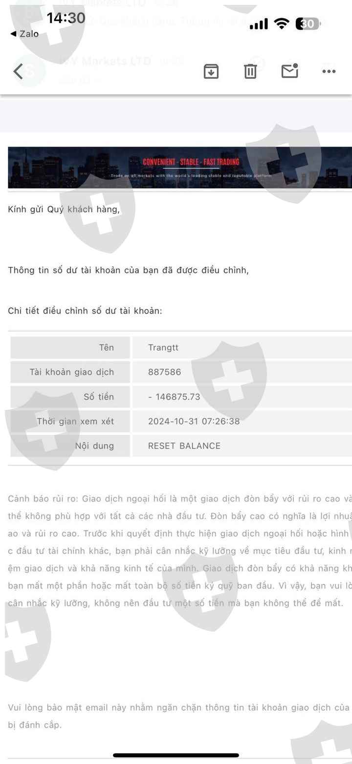 mt5 id: 887586 姓名: Tran Thi Trang 电话号码: 0947681758 - 我在交易所参与投资 IVY Markets但是在投入了70,000美元的资金并获得了146,000,000美元的投资利润后,我无法提取,并且场内以欺诈为由追回了我的所有资金,同时我按照市场价格进行了所有交易,我认为这是一个迹象。诈骗,所以我把它贴在这里警告大家,我会向警方提起诉讼,此外还将它发布在所有网站上,以便人们避免。