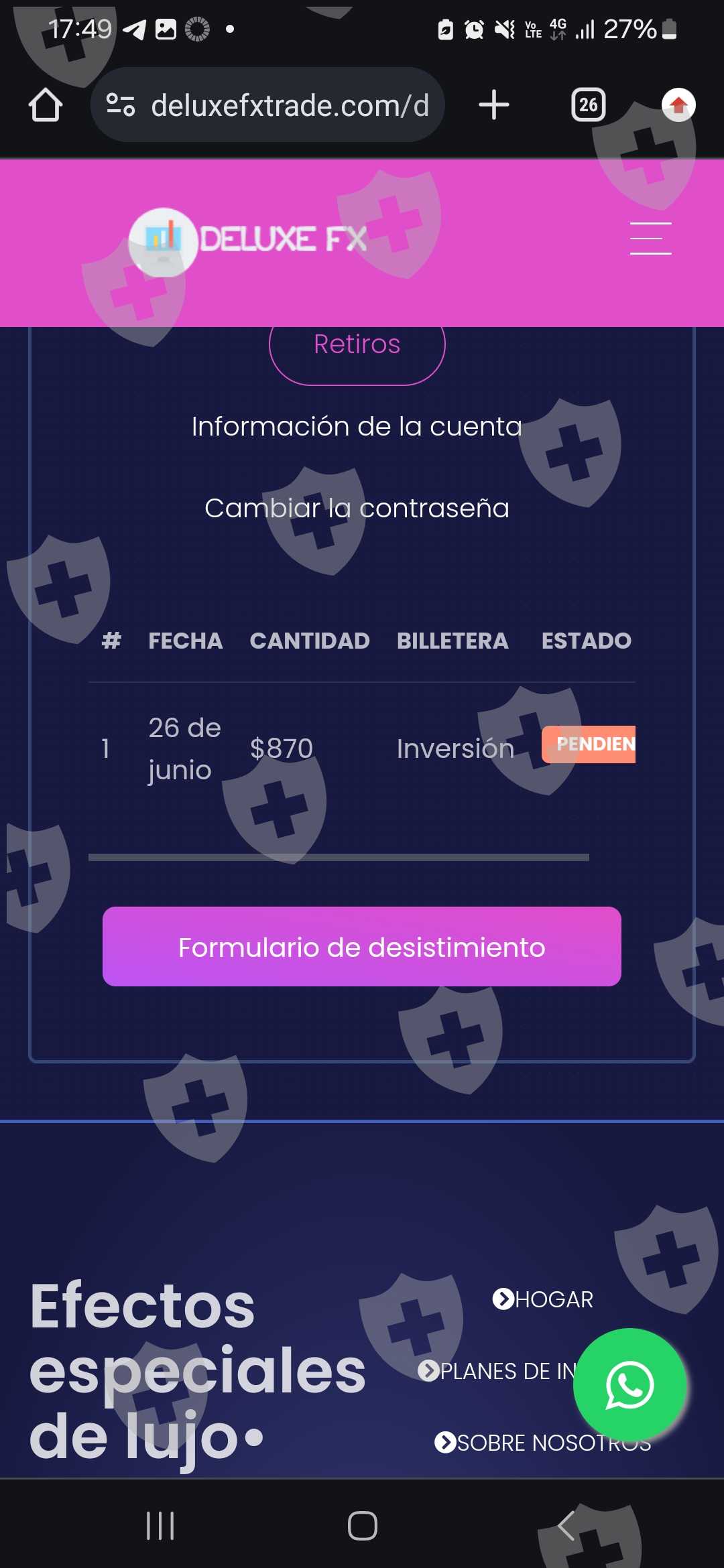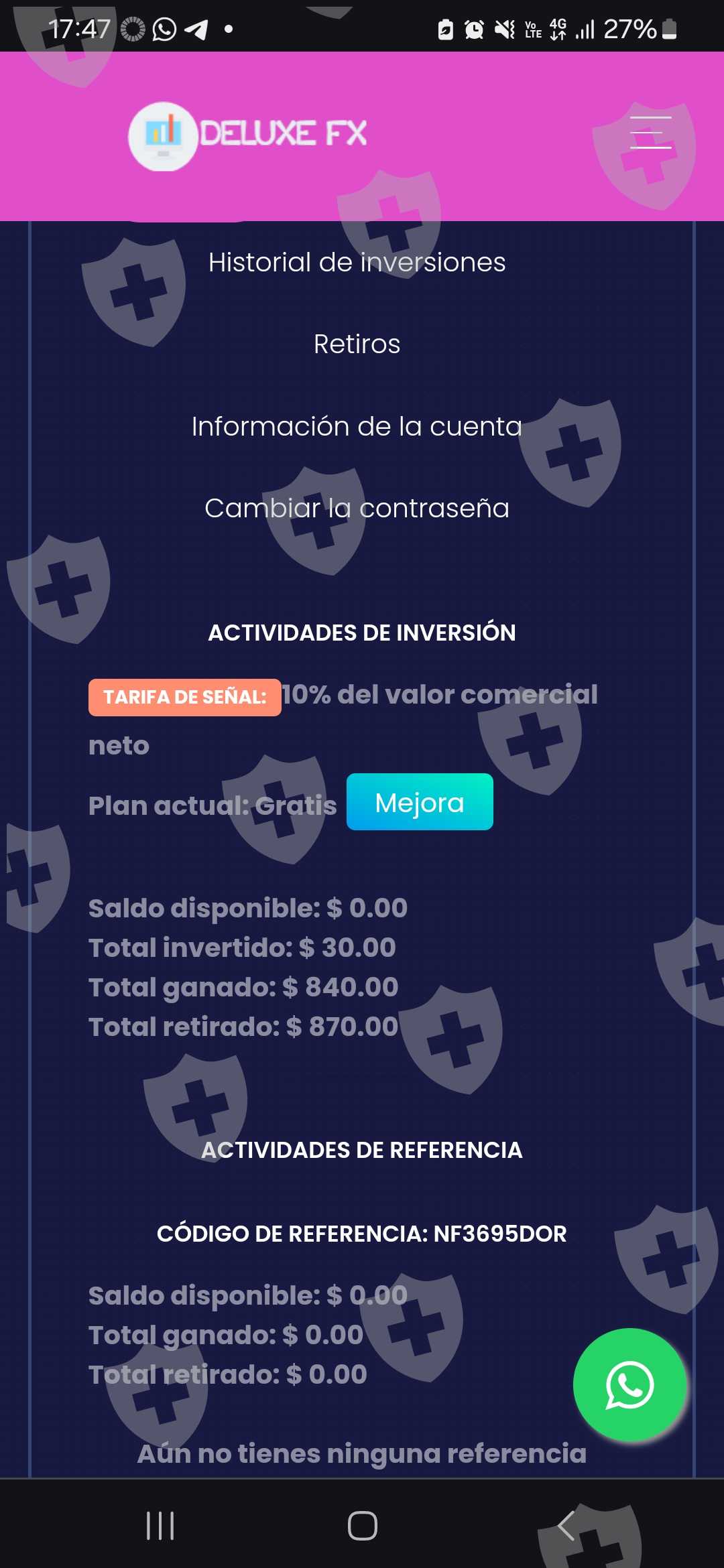 Invertir 15 dolares y una señora que se hace llamar veronica richard por medio de una cuenta de telegram llamada trading expert, me dió otros 15 para tener una ganancia entre 3 o 4 dias de 400 usd, obviamente si se reflejó en la plataforma pero no me ha permitido sacar el dinero o mi dinero desde hace un 5 meses aproximadamente, llamo a soporte y me dice que tengo que pagar un seguro para retirar. Solo ponen trabas para que les envíe mas dinero.