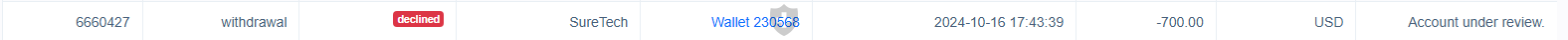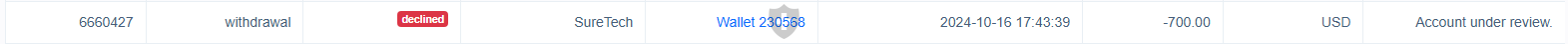 Last month, on October 9th, I attempted to withdraw my money, but my request was declined and my account getting “under review”. I decided to wait for a review, finally completed on October 16th. I tried to withdraw again but I got declined again and my account got under review again. I can't withdraw my money from dollars markets