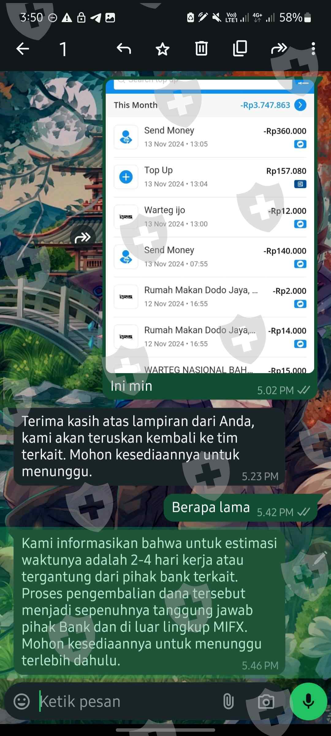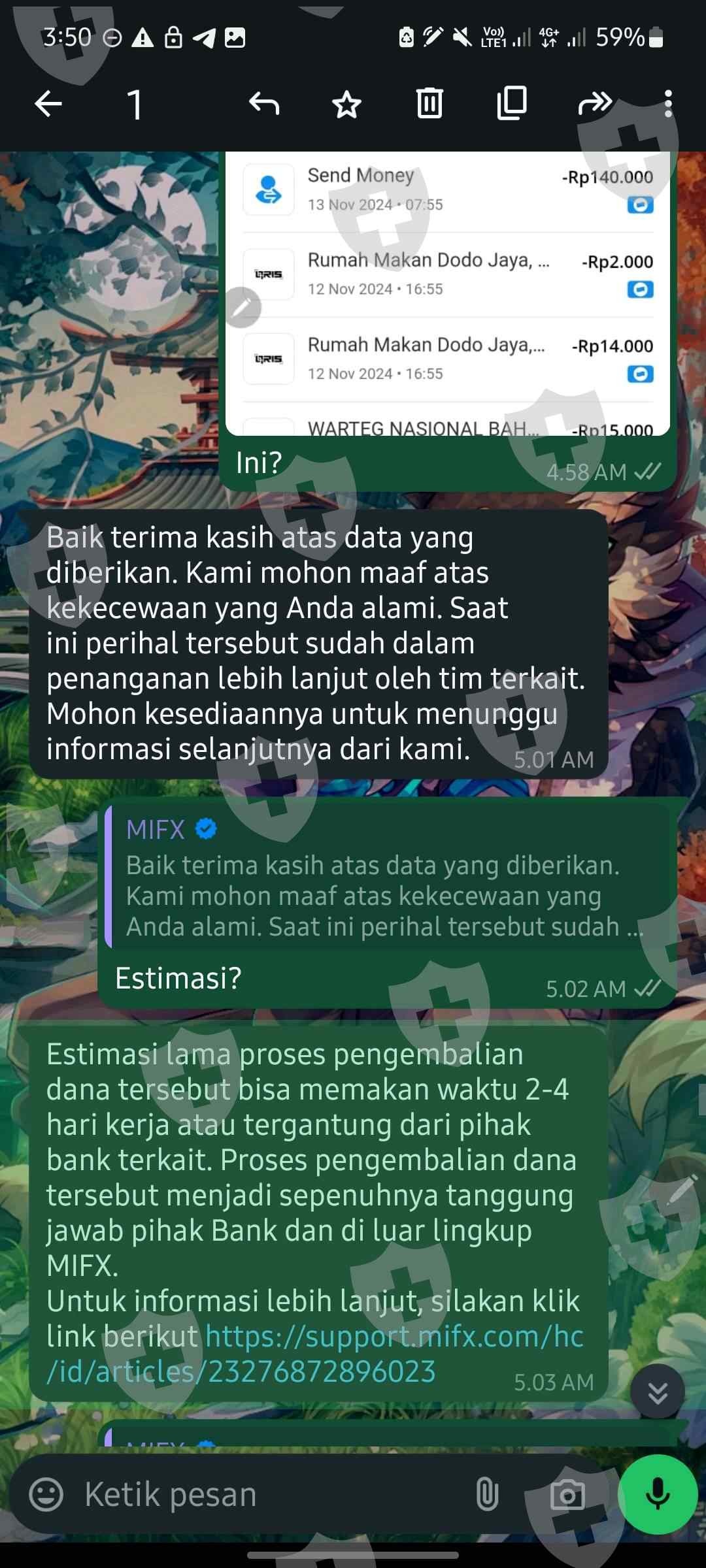 broker scam, udah deposit tapi gagal dan akan di refund. katanya udah di refund tapi ternyata tidak masuk, malah suruh ngirim mutasi berkali-kali dan chattingannya diulang-ulang terus kayak ngomong sama robot