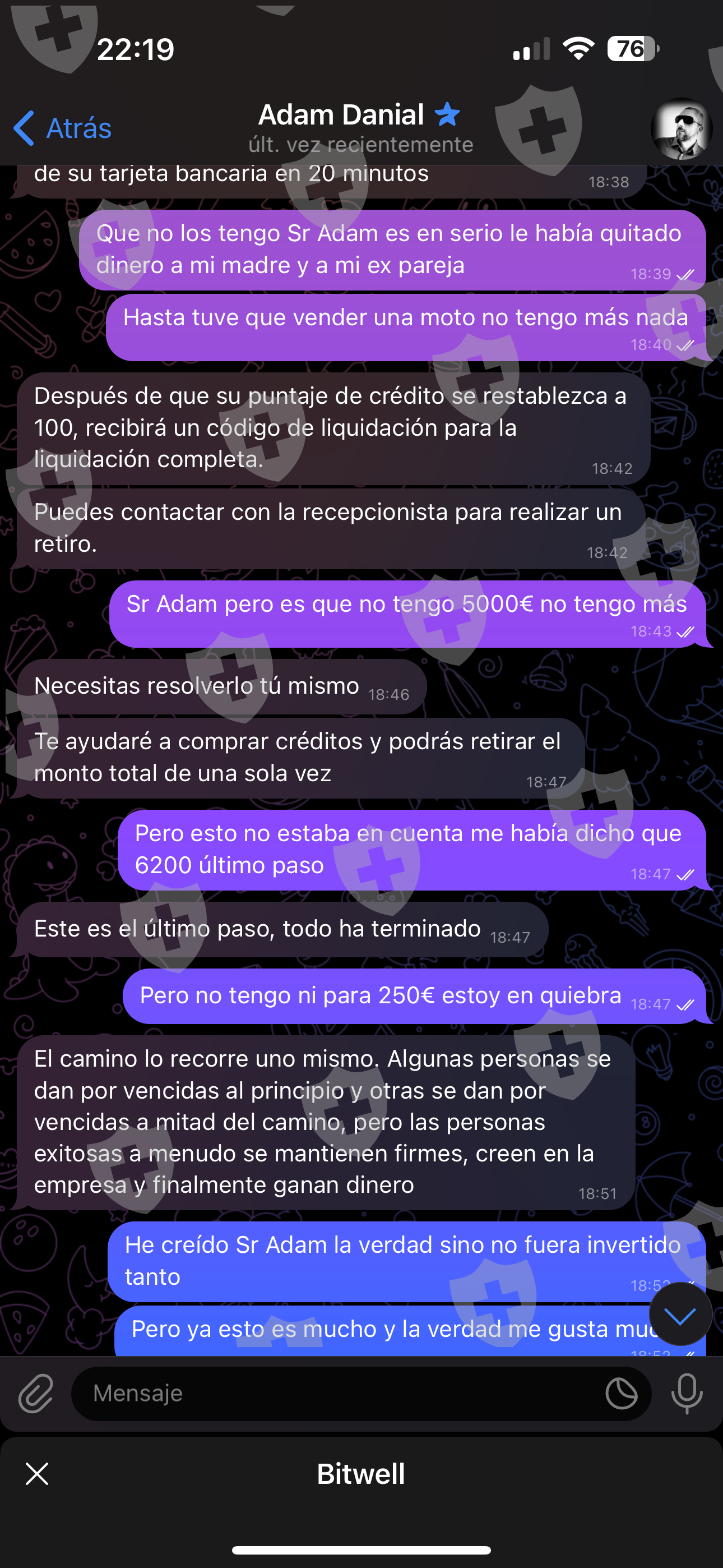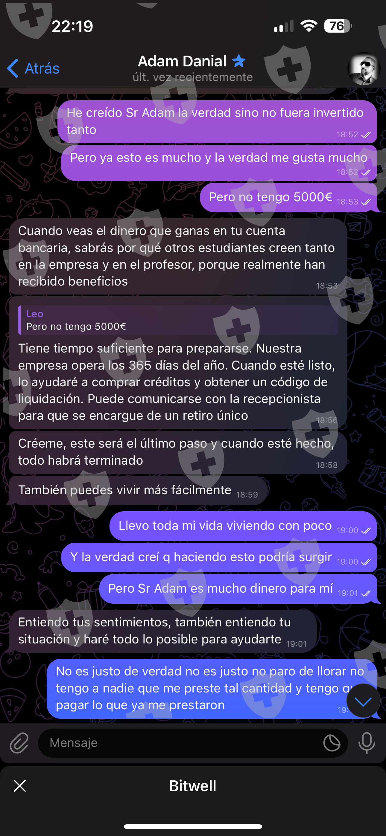 Pues al comienzo todo muy bien, te van pagando pequeñas sumas, pero todo cambia cuando te meten a grupos, al fallar alguna persona, te congelan la cuenta y empiezan a pedir más dinero para descongelarla, después piden más para recuperar los puntos que has perdido por haberlo echo mal, hasta que al final te piden 10000€ para poder tener un fondo para enviar grandes sumas de dinero cosa que ya es imposible de hacer me he dejado mi vida entera.. Dicen que no hay más soluciones que si no es así no pueden devolverte el dinero