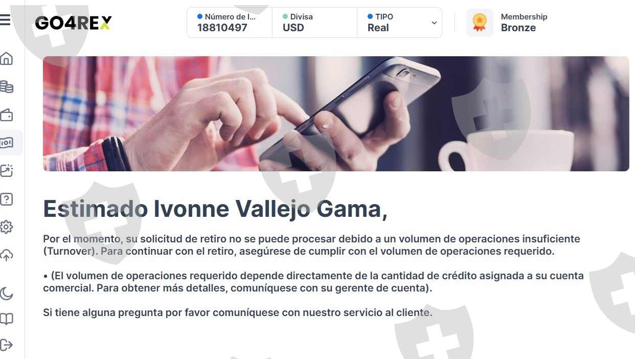 Invertí en GO4REX más de $3,000 USD, me hicieron un pago ellos de $50 usd para vincular mi cuenta y que así las ganancias me llegarían más rápido, y ahora que según tengo ganancias, me comentó la chica Selena Tapia que debía depositar $1,800 usd (de comisiones y realizé el depósito) y se autorizaba mi retiro, me marca después un tal Juan Mendez diciendo que debo depositar $3,000 usd más para que pueda retirar mi inversión y ganancias.(según porque fueron altas las ganancias y mi rango no lo permite). Según Selena Tapia que me apoyan con $1,500, y que si no realizo el depósito no puedo retirar nada de dinero. Estoy desesperada.