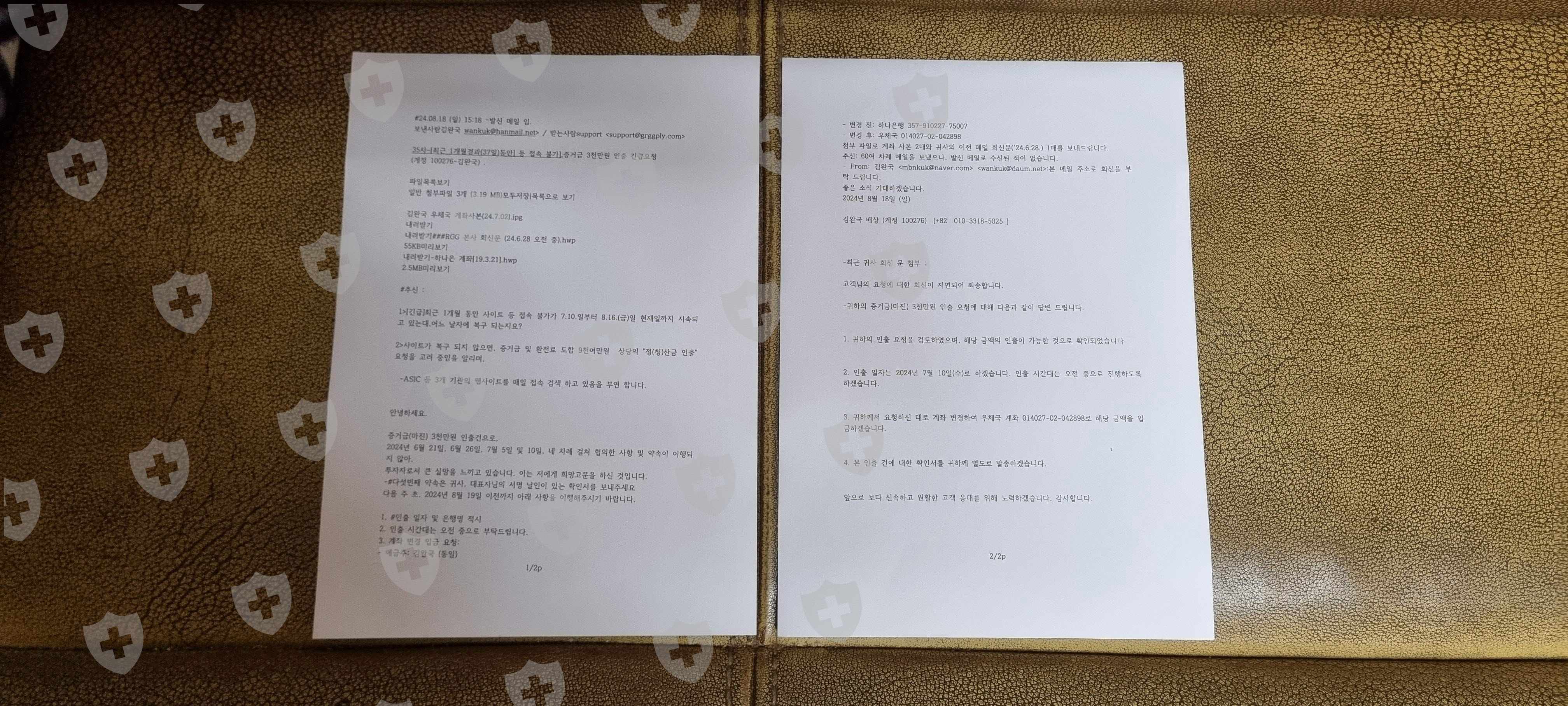 2. 8개월이 경과 했음에도 증거금(마진) 3천만 원 인출 요청이 4차례에 걸쳐 이행되지 않았고 인출 약속이 총 4차례나 위반 되었습니다.