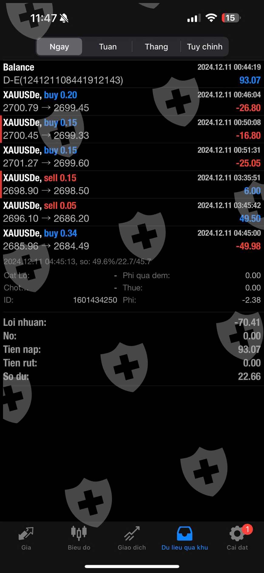 sàn bạn có thể thấy lệnh Sell Tôi đang ở vị thế t t t tôi là nhà giao dịch có id 6816802 và có giao dịch tại sàn zfx 2698.90 có đặt Sl tại 2698.50 tôi cài sl từ thời gian 3h48 sàn sl thì ở đoạn này Vàng chỉ ở 2698.1 và spead của tk ecn = 11$ vậy tại sao lại sl và sập 100 pip vì tôi có lệnh 0,05 nữa lệnh lớn hơn của tôi lại bị sl vô lí và sàn chỉ bồi hoàn 50% số tiền tôi lỗ ở lệnh buy Thứ 2 0,34 spread 11 mà vào lệnh 0,34 âm 44$ làm tôi chay và 2 lệnh liên tục như thế tôi nghi vấn sàn đang gian lận đối với nhiều tài khoản khác