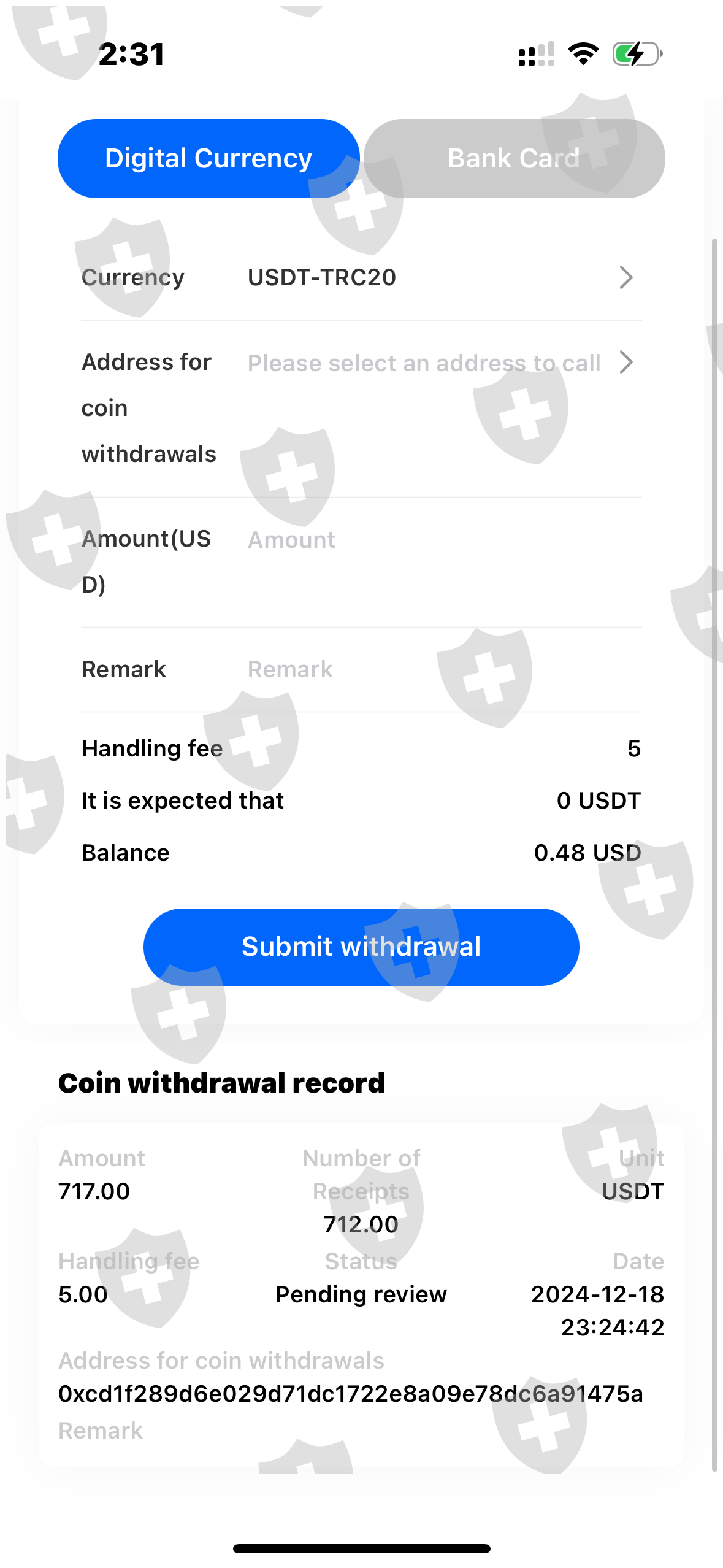 我的钱丢了。由于提款正在处理中,客服无人回复