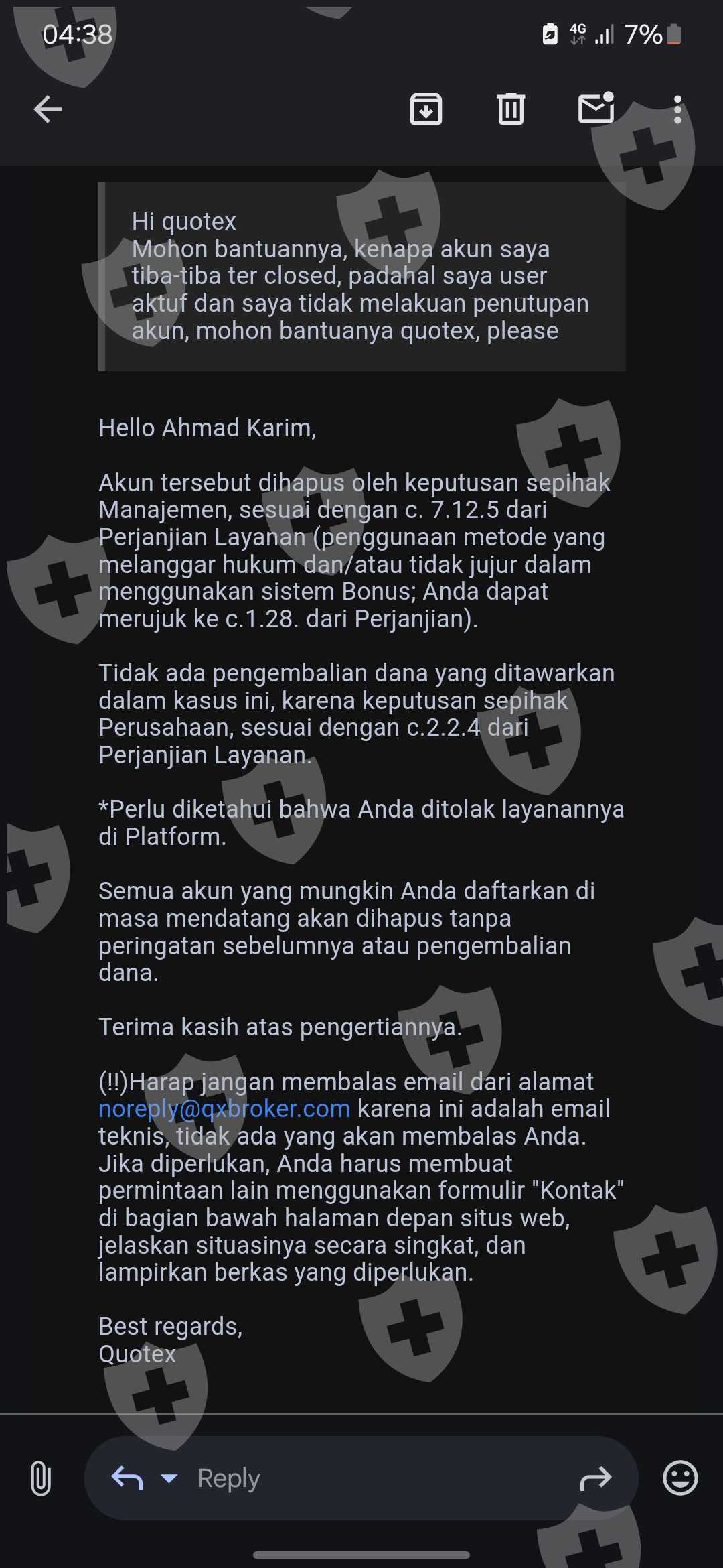 我的账户被单方面关闭