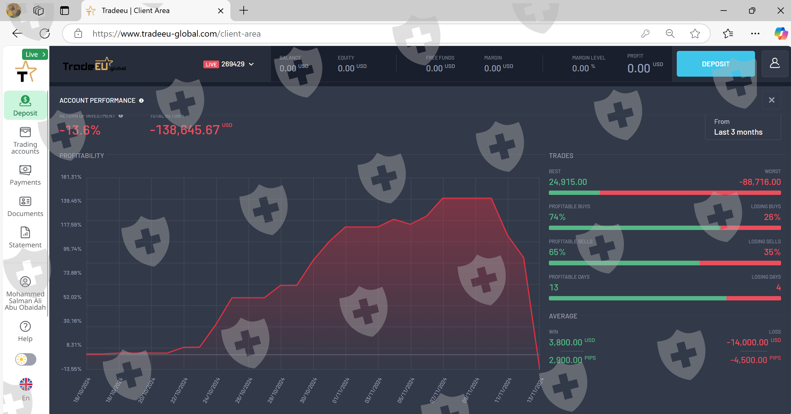 小心。一个月内损失了 10 多万,我们完全理解交易可能会亏损,但这家公司的问题是,他们对所有交易都做出决定,然后你必须自己解决问题,只需添加资金,一个接一个,直到你损失整个账户。这是一般反馈,不仅仅是我的。每次亏损后,不同的客户经理都会给你打电话,他会表明他可以帮助和恢复,但结局都是一样的,“更多的资金”我录下了电话,现在支持我的法律案件。再说一次,要小心,不要相信