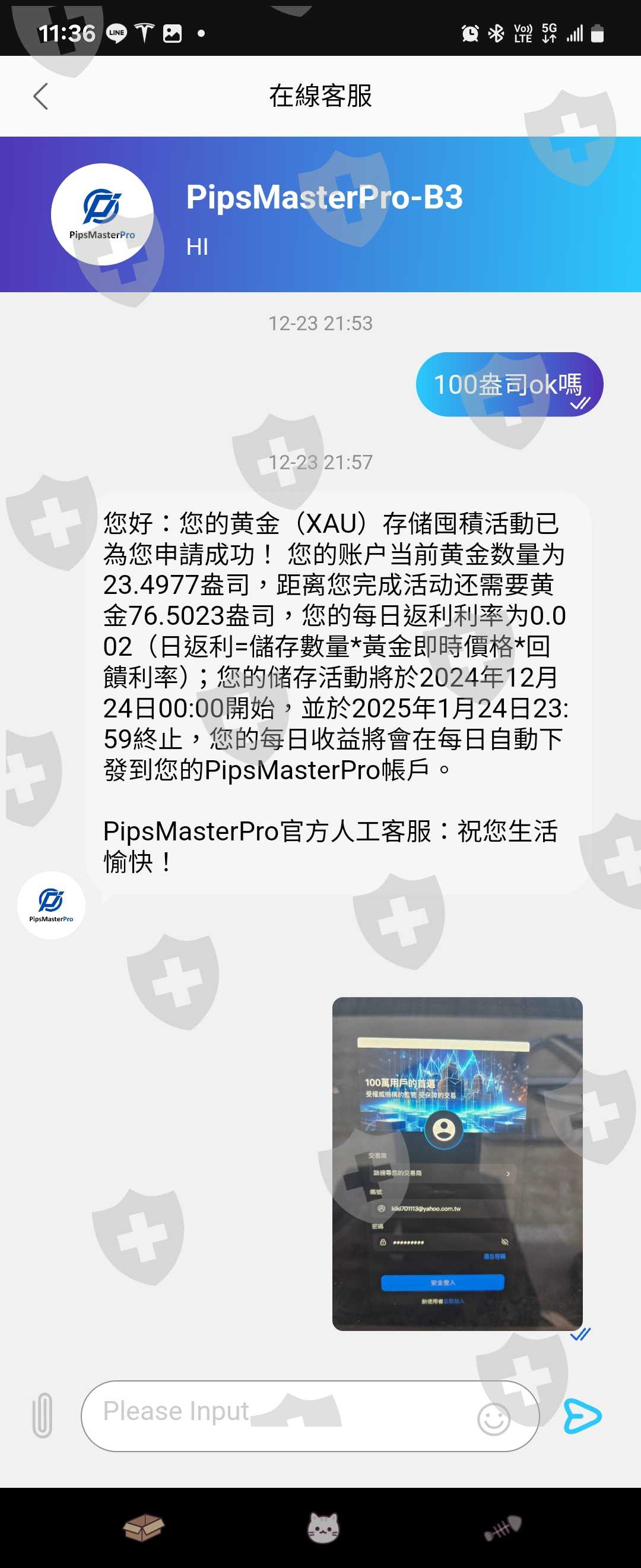 我在IG上認識一位網友一路向南line id:lucky-077詢問照片影片跟投資無關,漸漸的每天聊天後,他說投資黃金平台,一開始我只有入金2萬他還有讓我出金,來去二次,漸漸的卸下心防,然後他又鼓吹我參加贈金活動,因為我金額不夠主動幫我加值,讓我能參加活動,活動一參加就無法取消,因為想趕快達到完成100盎司後出金,結果達到後出金又需支付驗證費用,然後對方又叫我去貸款把驗證完成就可以出金