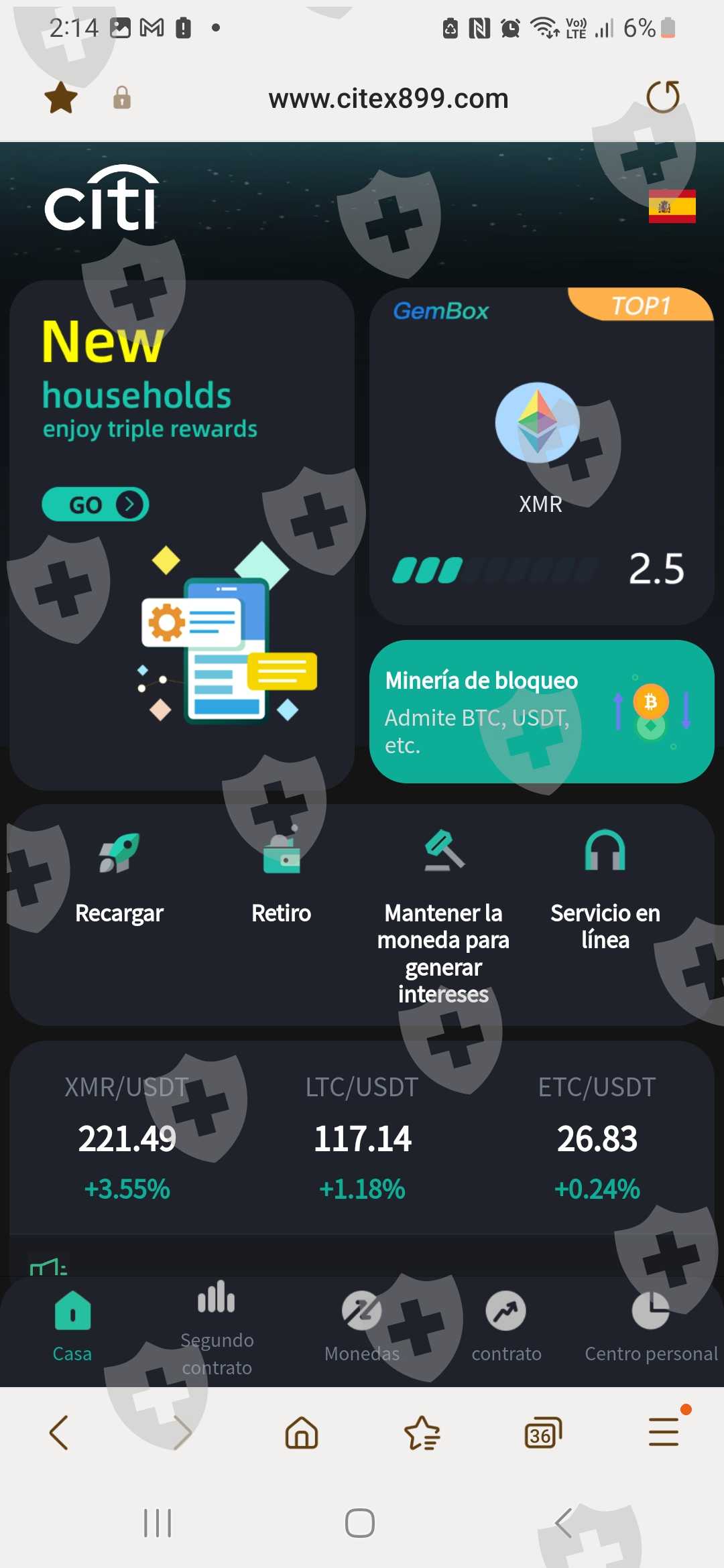 他开始在 WhatsApp 上与我交谈,他告诉我要投资加密货币,首先下载 okx 应用程序,他将我的钱转换为加密货币,然后将其发送到此页面 https://www.citex899.com ,据说您可以在其中赚钱,然后有一段时间页面最后要求我缴税,他们向我收取了 800 USDT 的税款,但他们一直没有释放我的钱,大约损失了 1400 USDT。