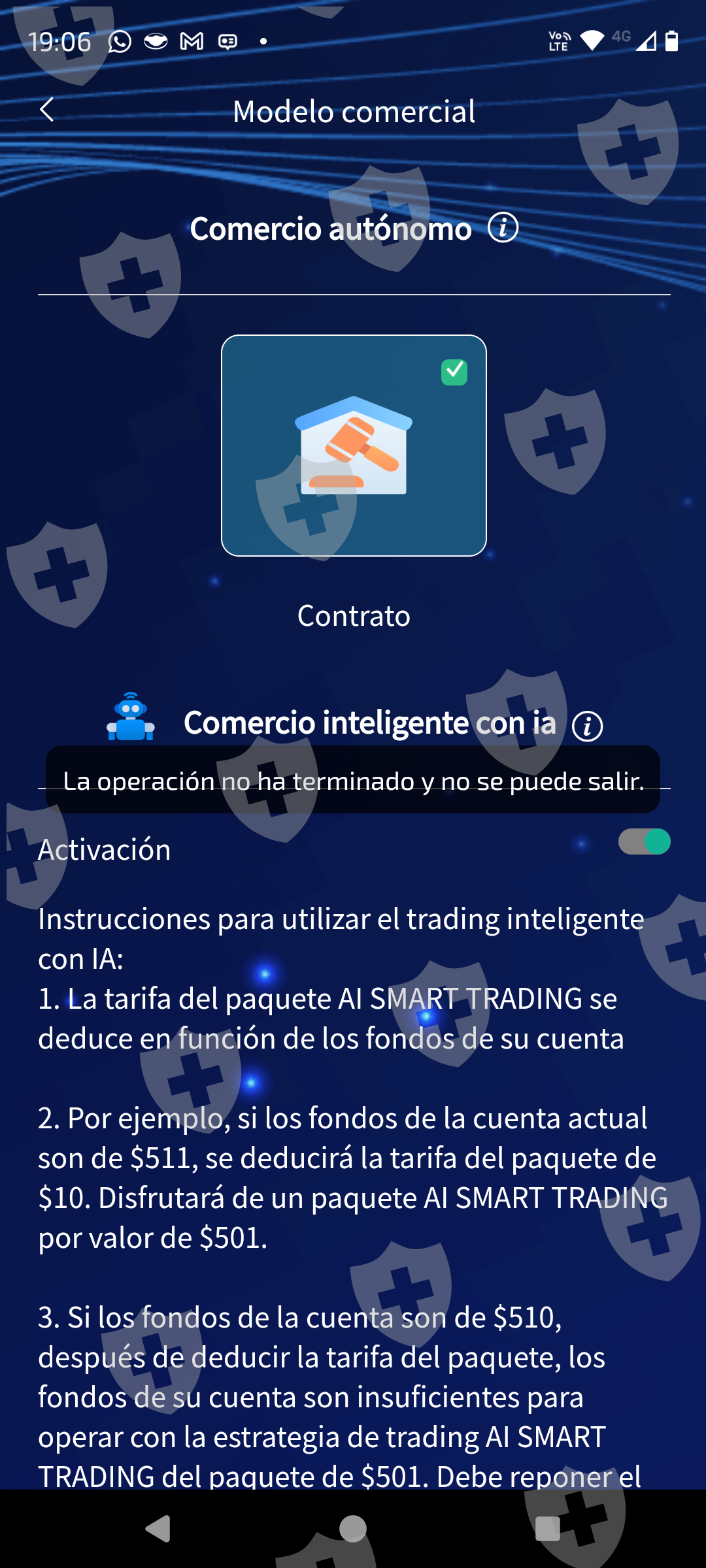 deposite dinero para obtener ganancias financieras no puedo desactivar la inteligencia artificial que utiliza la aplicación o retirar dinero de mi cuenta y propiedad.