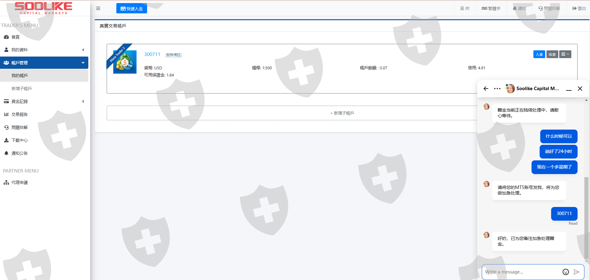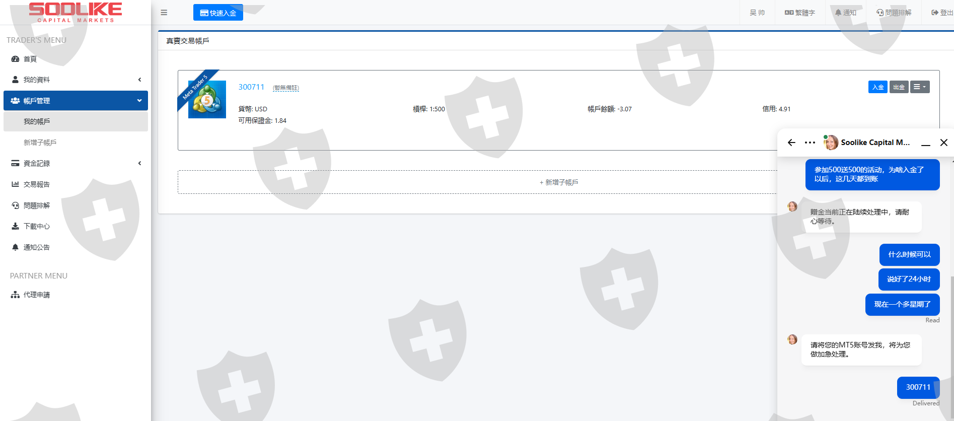 说入500送500,还说用什么算法系统,我入了500以后,也没送500,第二天我账户就爆了,我想着赠金送来能做一下,搞不也能赚回来,还一直拖着不给,后面我说我要曝光,赠金才到,赠金到了以为可以操作,然后说我的本金亏完了,不可以做,怕亏到他们的赠金,谁不知道赠金就是你平台输入的一个数字,我很生气,只能来曝光了,这种平台你赚了,搞不好不给出金,一直找各种理由,太垃圾了,玩不起就不要玩,所以这个平台千万不能玩,老客户看到这个信息,赶紧出金,比这个垃圾Soolike平台好的太多了,不要贪便宜,更不要想着什么算法交易,垃圾平台,我还要去其他媒体曝光它,垃圾,赶紧换平台,不然迟早跑路