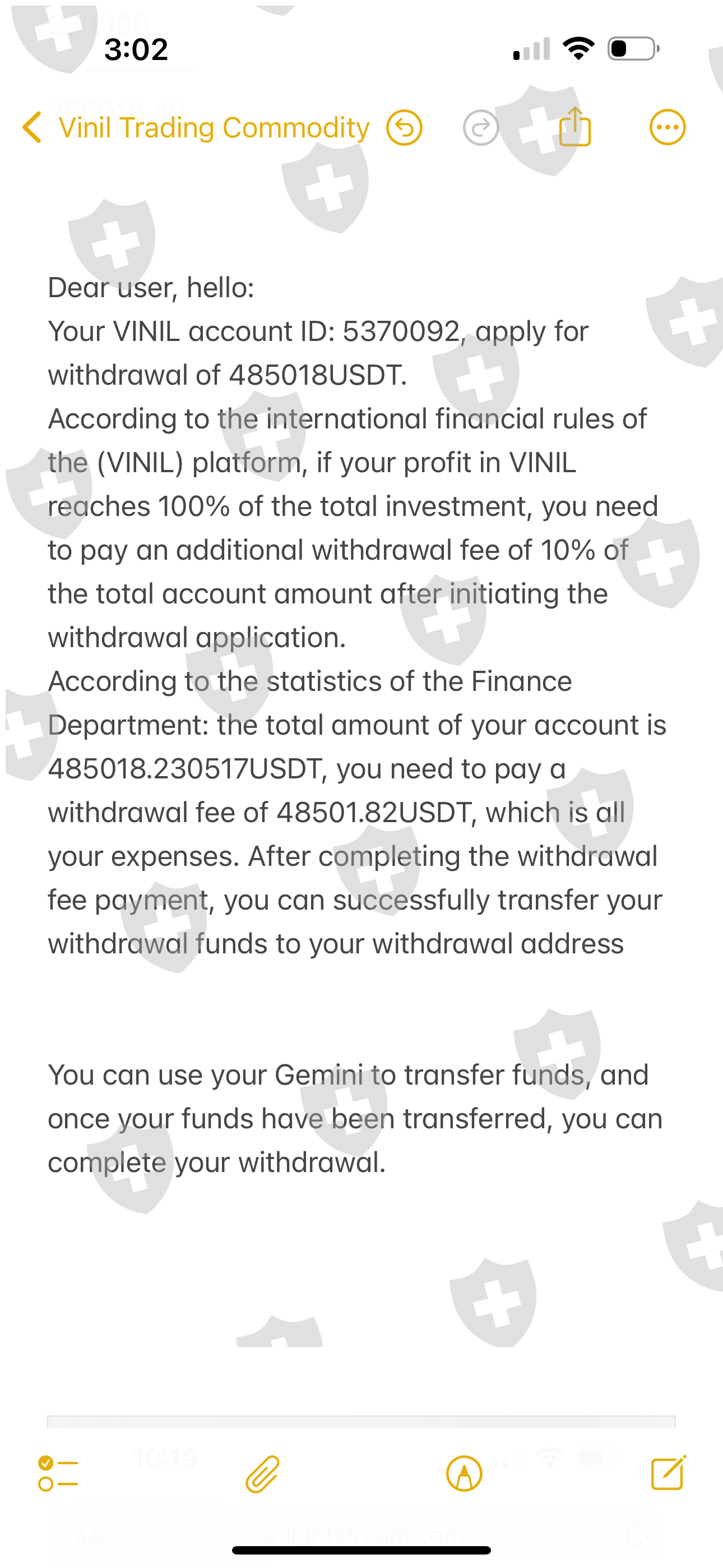 Unable to withdrawal from this scam Vinil