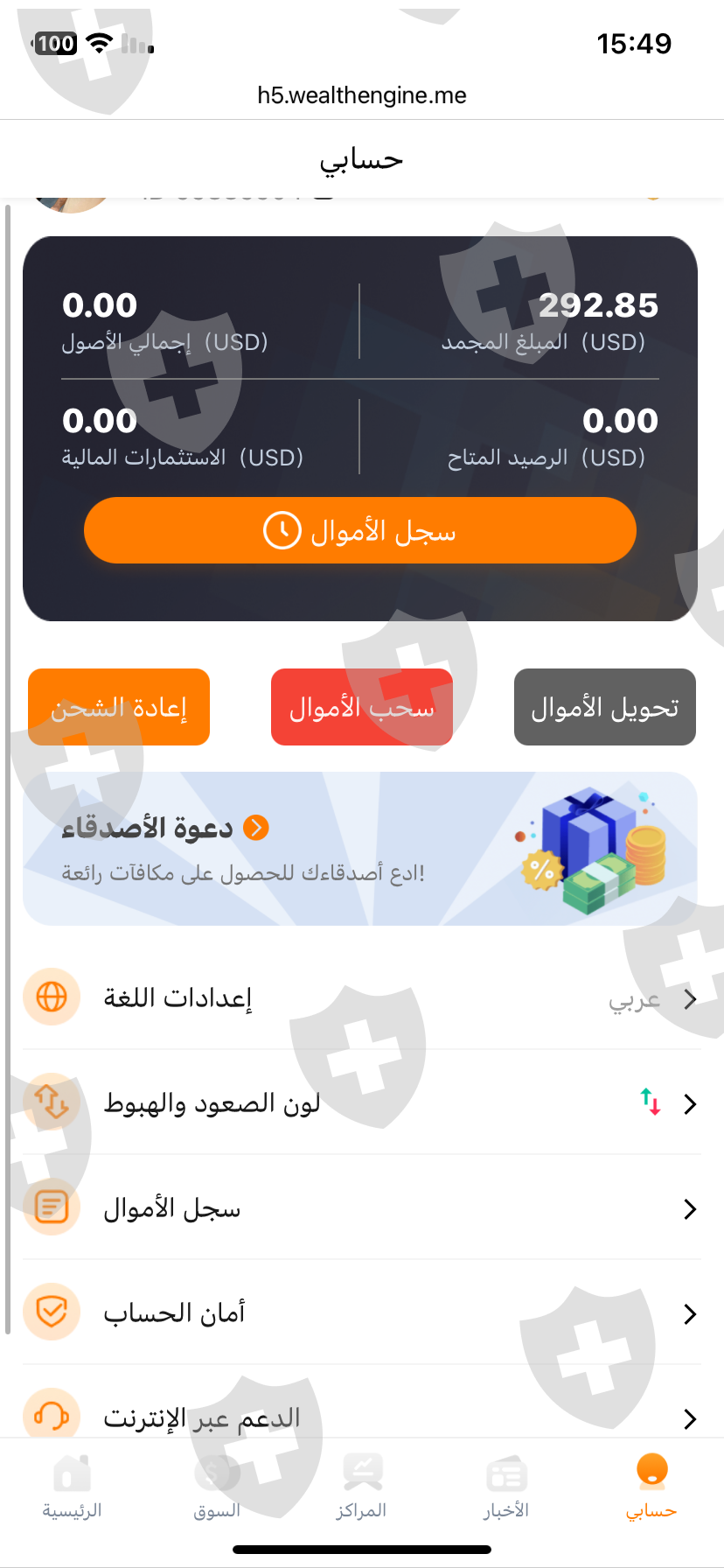 تم تجميد الاموال المحتال يزعم انه تمت قرصنة المنصة و يطلب شحن 100 دولار لالغاء تجميد الاموال و اخر اجل هو 25 مارس عند هذا التاريخ لايمكننك استرجاع اموالك