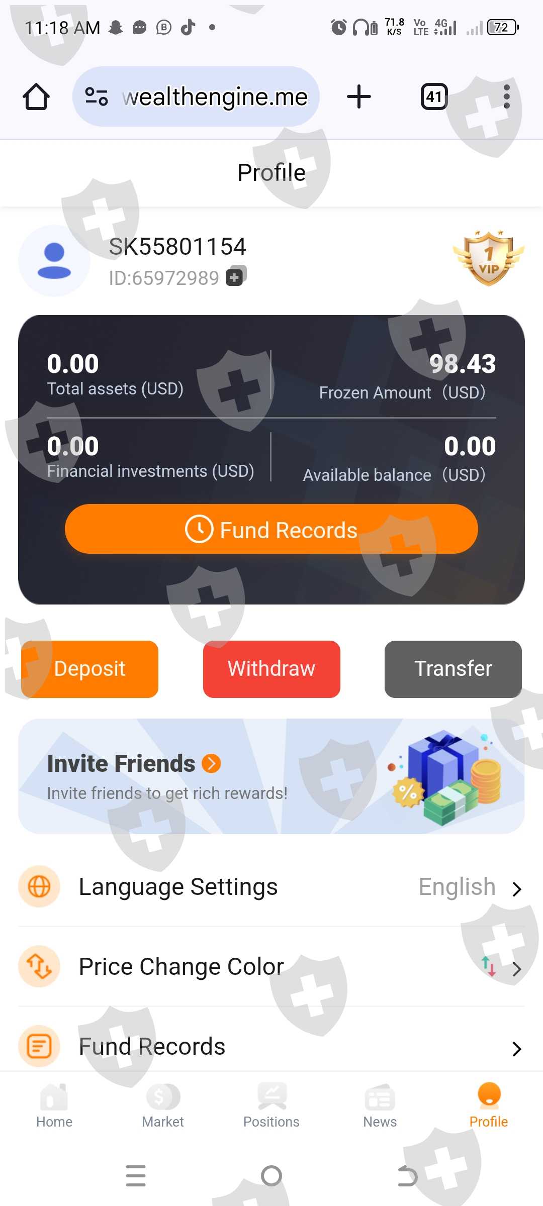 我的钱 98.43 美元冻结