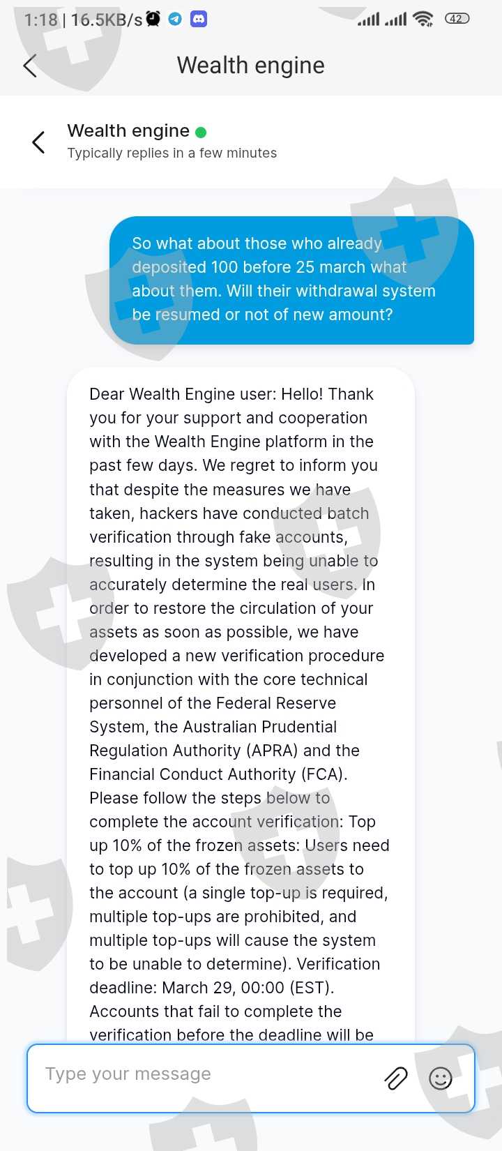 Despite this, many users complied and deposited the additional $100 before the March 25th deadline. Now, they are being asked to deposit 10% of their already frozen funds by March 29th. This pattern strongly suggests fraudulent behavior and appears to be a deliberate attempt to exploit users, particularly those in vulnerable financial situations.