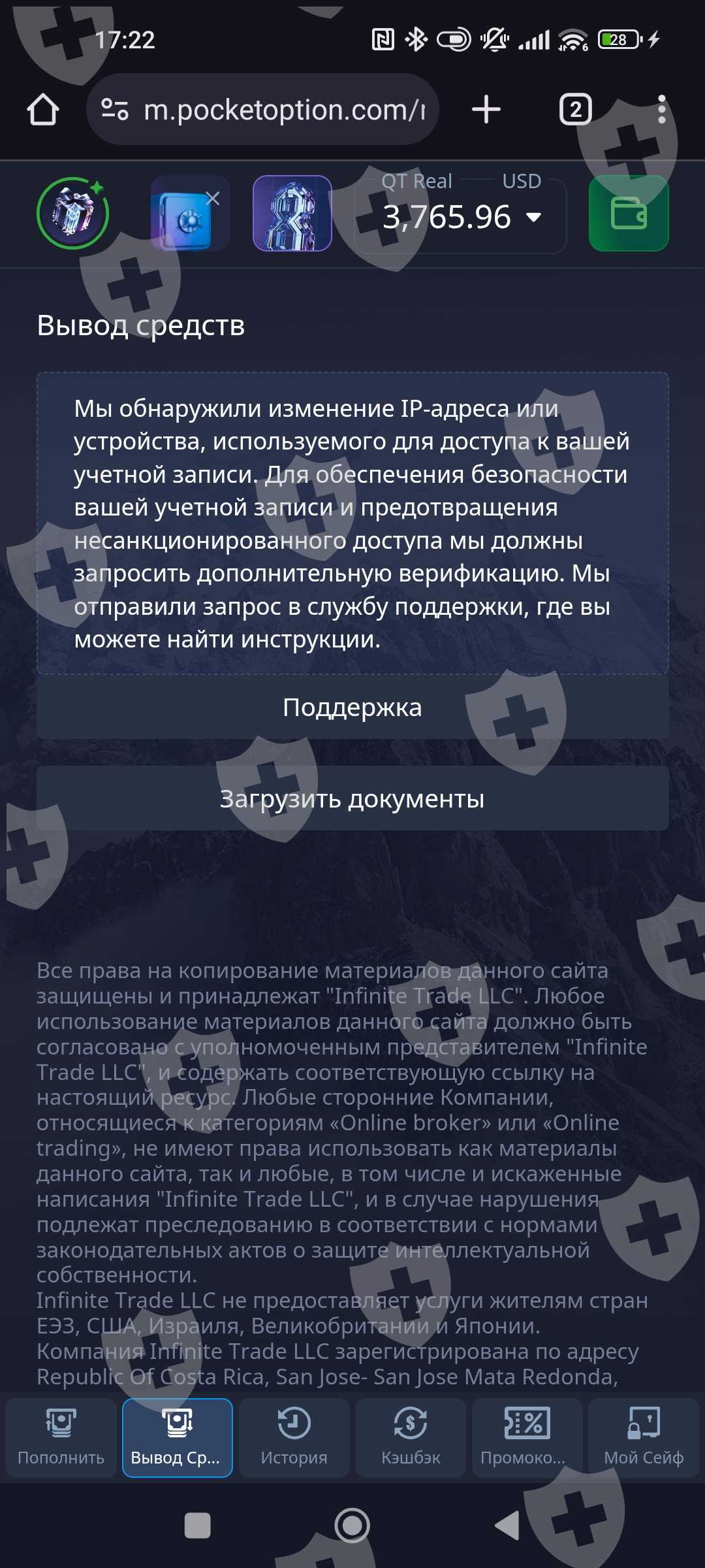 我存入了 31 美元,赢了 3,800 美元。在验证了我的账户并通过了 kyc 后, Pocket Option冻结了我 3,765.96 美元的提款。他们现在扣留了我的资金,并引用了之前报告的重复账户,该账户是错误创建的,并根据我的要求关闭。我提供了所有文件,完成了验证,并且从未恶意违反他们的条款。这是明显的资金扣留,我请求 wikifx 进行调查并警告其他人。