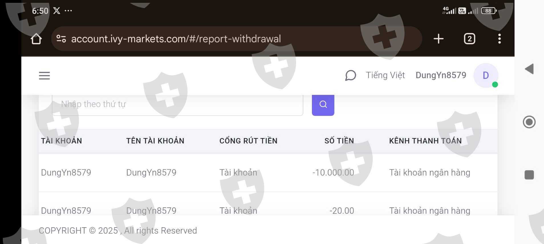 我是ivy交易所的账户所有者DungYn8579,交易id为:888013。注册邮箱:dinhdungdrt@gmail.com我于2025年1月3日在官网进行了提现,但是到现在交易所还没有给出任何解决方案。现在我写这篇文章是为了恭敬地请求Wikifx Pro帮助我将我存入交易所的2500美元提取出来。这是我从银行借的钱。我希望 Wikifx 能帮助我。我确实需要撤回这笔资金。下面附上我的转账收据和我生成的提款单。