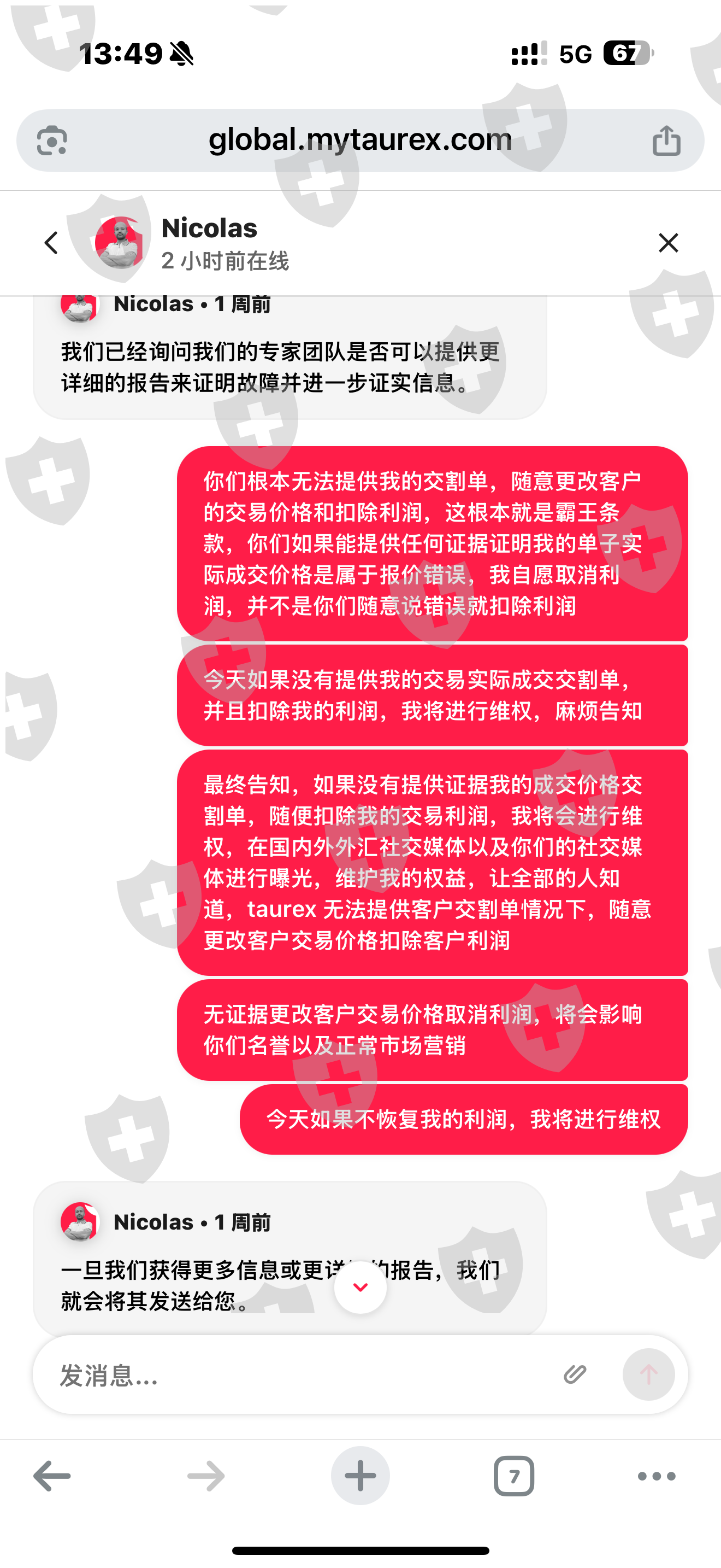 投诉平台taurex擅自修改客户交易价格,成交以后取消利润