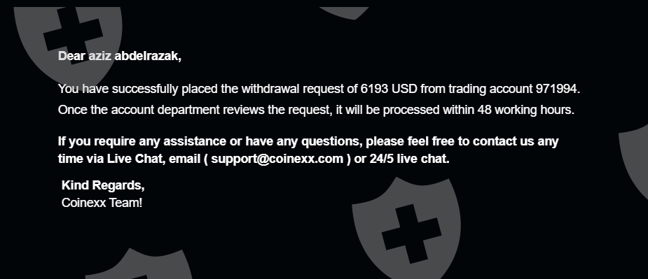 Coinexx has blocked access to my personal space, when I try to connect to my mt5 accounts I have an error message saying invalid accounts, the story is just crazy, it started after requesting a withdrawal of 6000 dollars of profit, I was contacted by phone first additional to carry out a verification according to them and confirm to me later that my withdrawal will be launched. The next day I contacted them, they told me that my withdrawal will be received before the market closes the same day (Friday), I contacted them again yesterday about the withdrawal they told me that it will be processed as quickly as possible. and today I realize that all access to my accounts has been blocked, I contact them by chat, they tell me that the accounts have been blocked due to inactivity on the accounts or that it is false I placed trades yesterday, then I am told that my accounts have been "RECYCLED", and that I would be contacted later by email. I find myself without total visibility with my depo