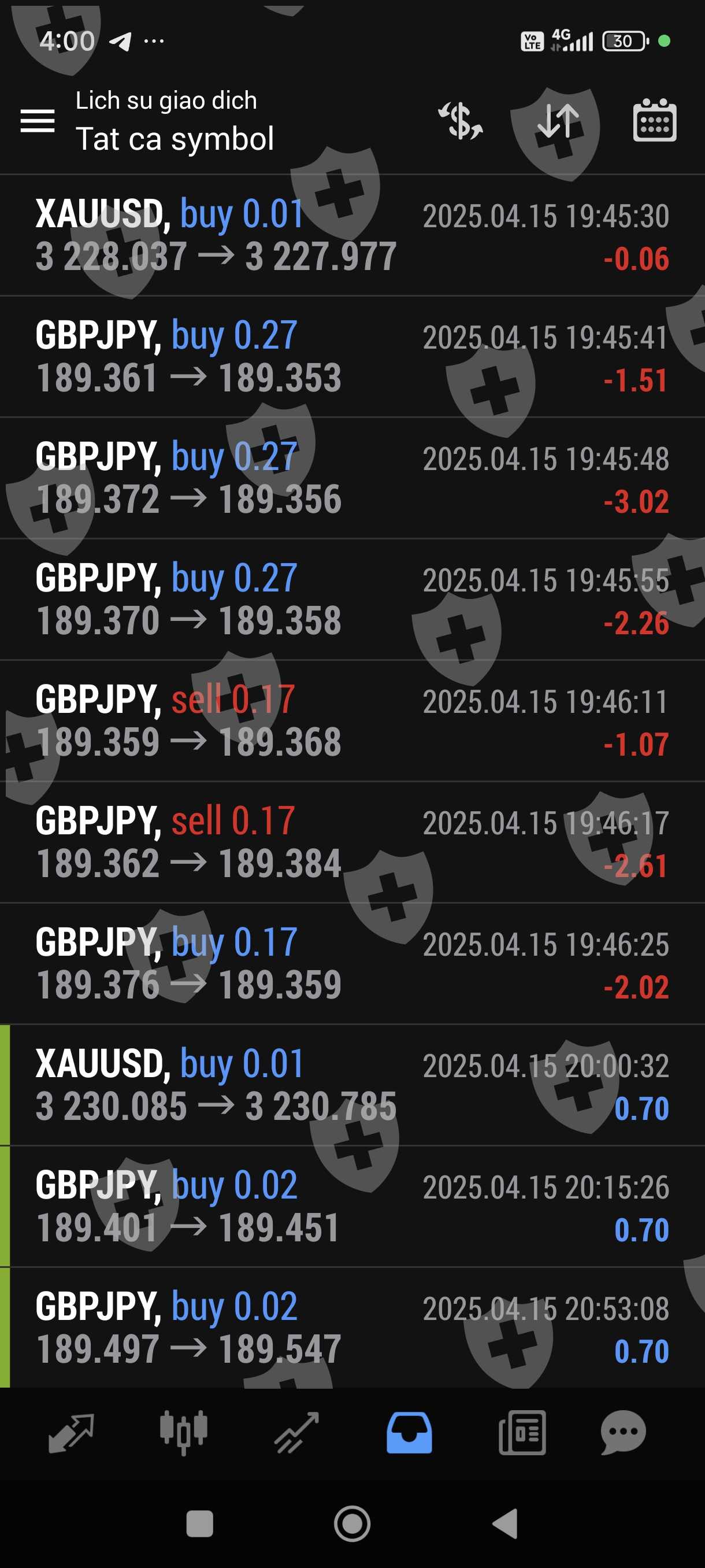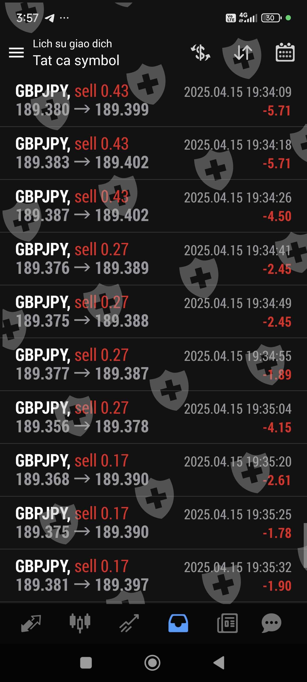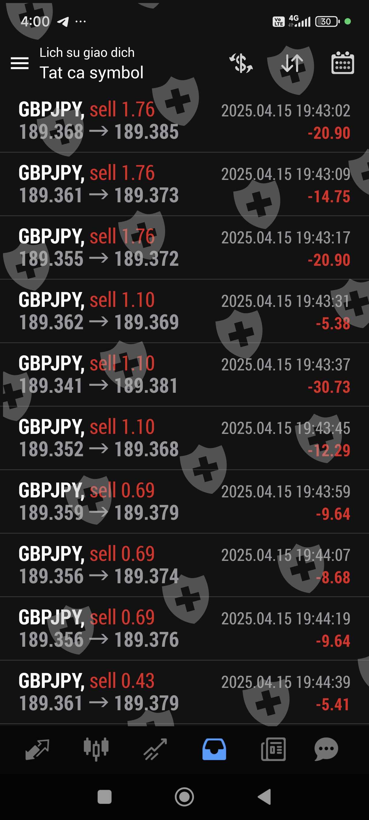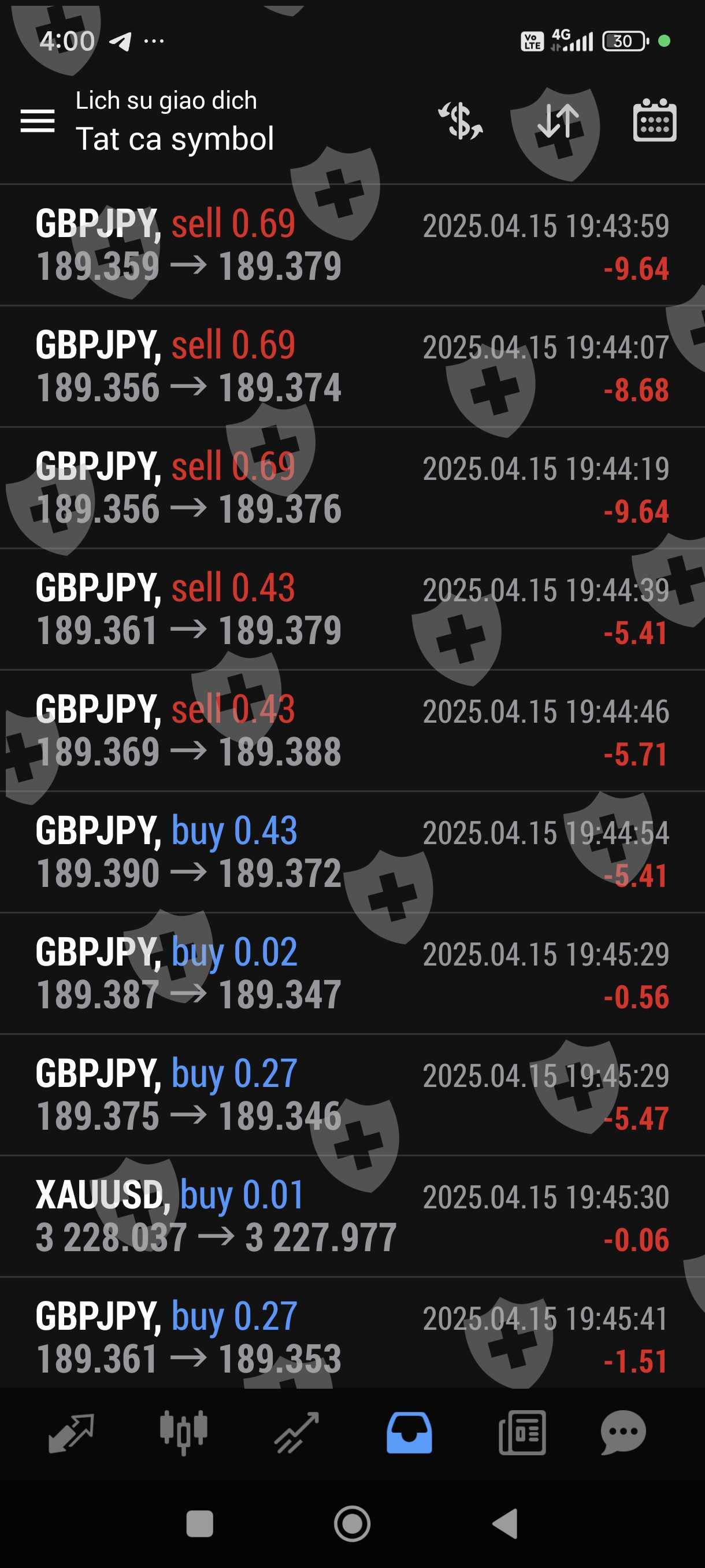 Tôi giao dịch bằng bột đổ ib sàn cũng cấp. Giao dịch 1 tuần lãi hơn 100%. Chiều nay tôi gửi yêu cầu rút 1000 usd trên 2500 usd trong tài khoản thì sàn hẹn 48 giờ mới giải quyết. Khuya nay trong lúc tôi ngủ thì còn bot này vào lệnh liên tục và không theo phương pháp quy luật trước đó, thừa lỗ liên tục nên chỉ trong thời gian chưa đầy 1 giờ tài khoản tôi chỉ còn hơn 20 usd. Như vậy đã có một sự cố ý để làm cho tài khoản của tôi giảm sút không còn rút tiền được nữa,Rút tiền chậm trễ