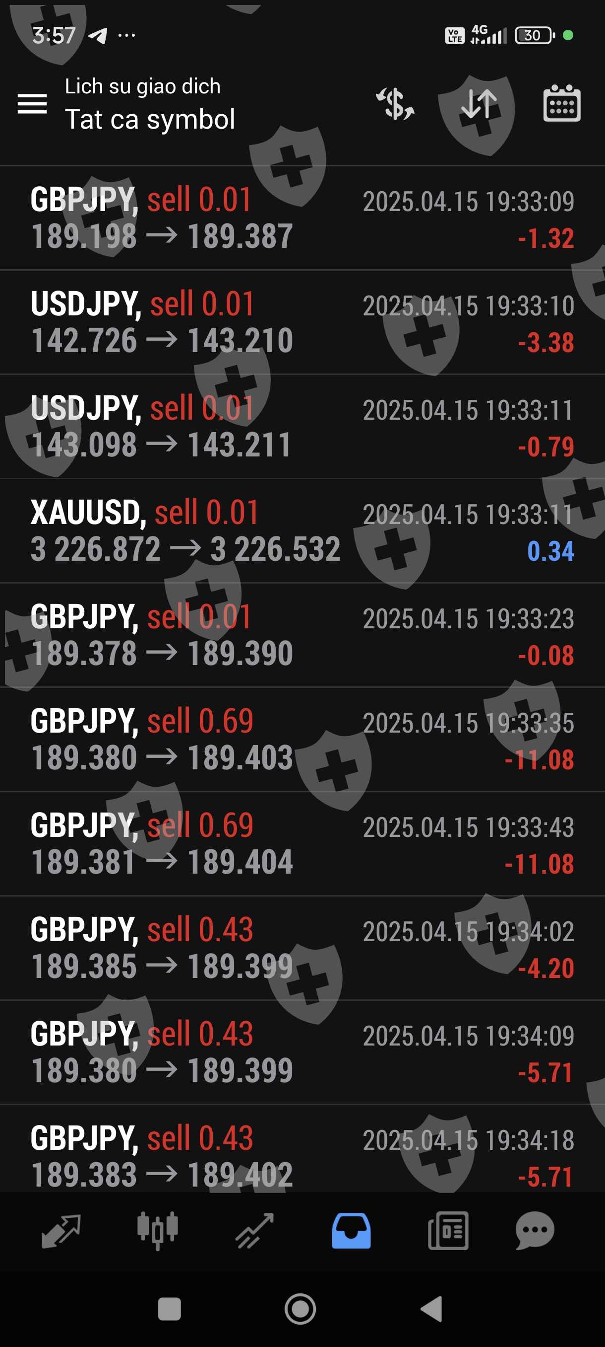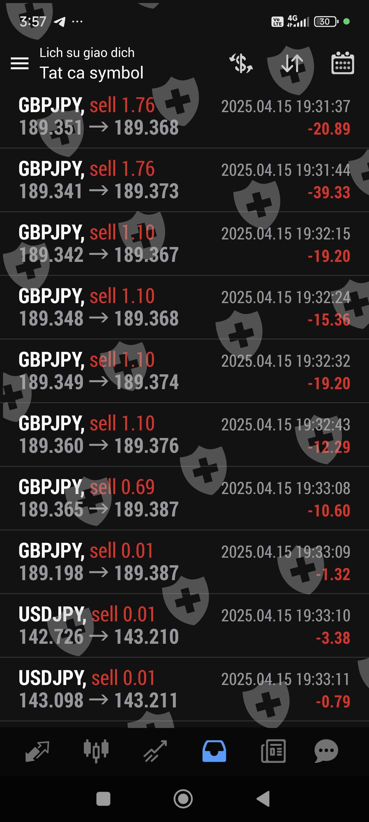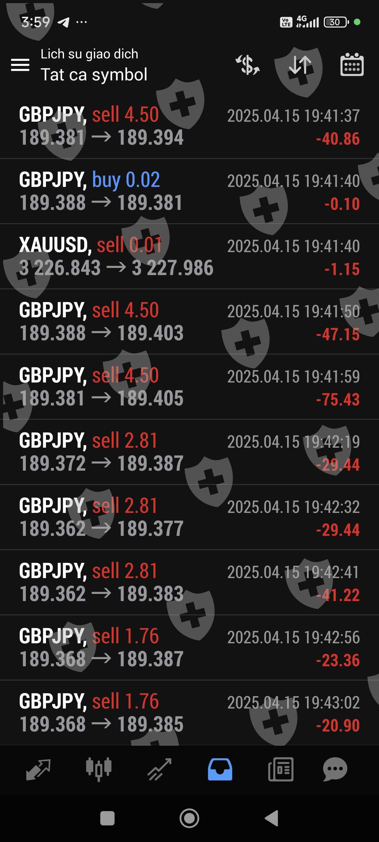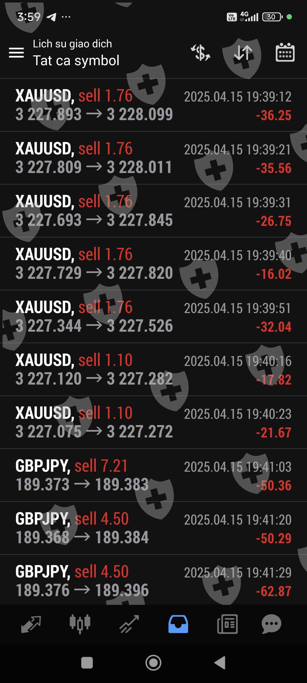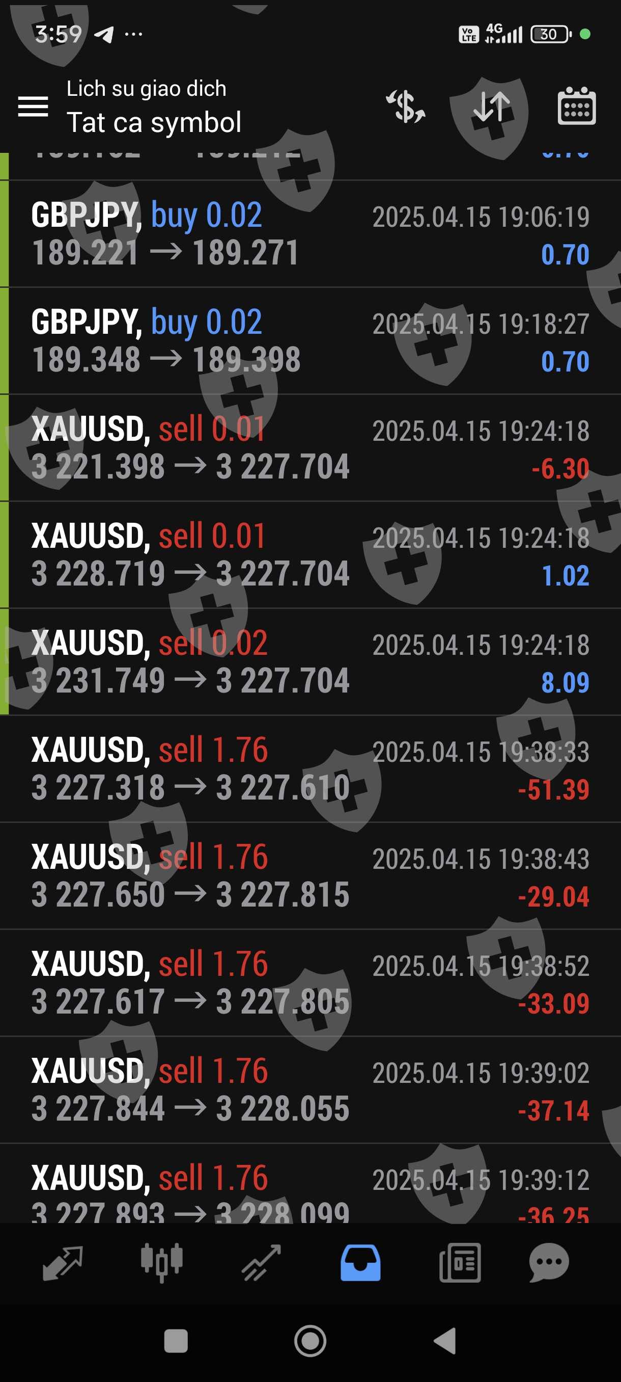 Tôi giao dịch bằng bột đổ ib sàn cũng cấp. Giao dịch 1 tuần lãi hơn 100%. Chiều nay tôi gửi yêu cầu rút 1000 usd trên 2500 usd trong tài khoản thì sàn hẹn 48 giờ mới giải quyết. Khuya nay trong lúc tôi ngủ thì còn bot này vào lệnh liên tục và không theo phương pháp quy luật trước đó, thừa lỗ liên tục nên chỉ trong thời gian chưa đầy 1 giờ tài khoản tôi chỉ còn hơn 20 usd. Như vậy đã có một sự cố ý để làm cho tài khoản của tôi giảm sút không còn rút tiền được nữa,Rút tiền chậm trễ