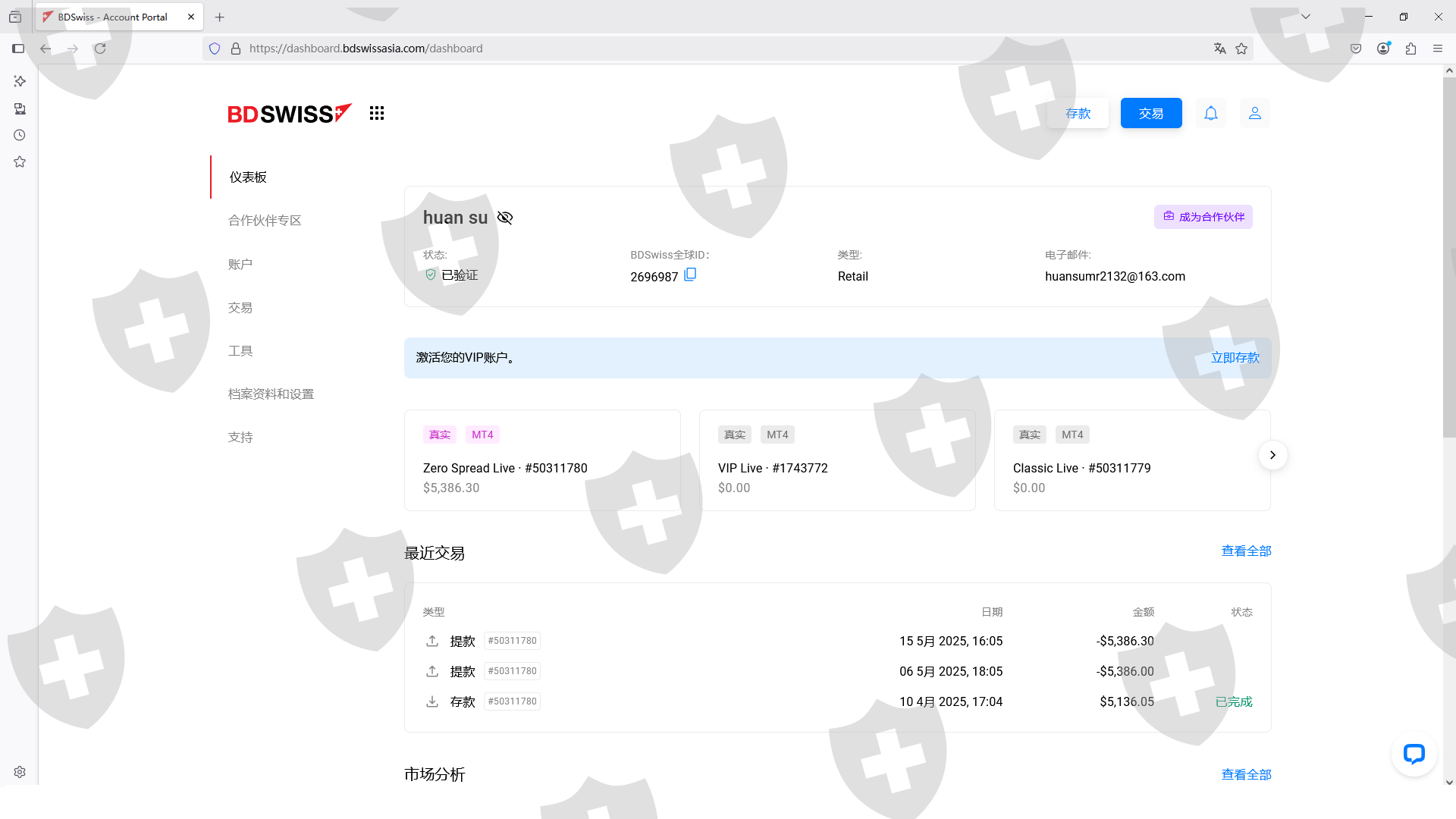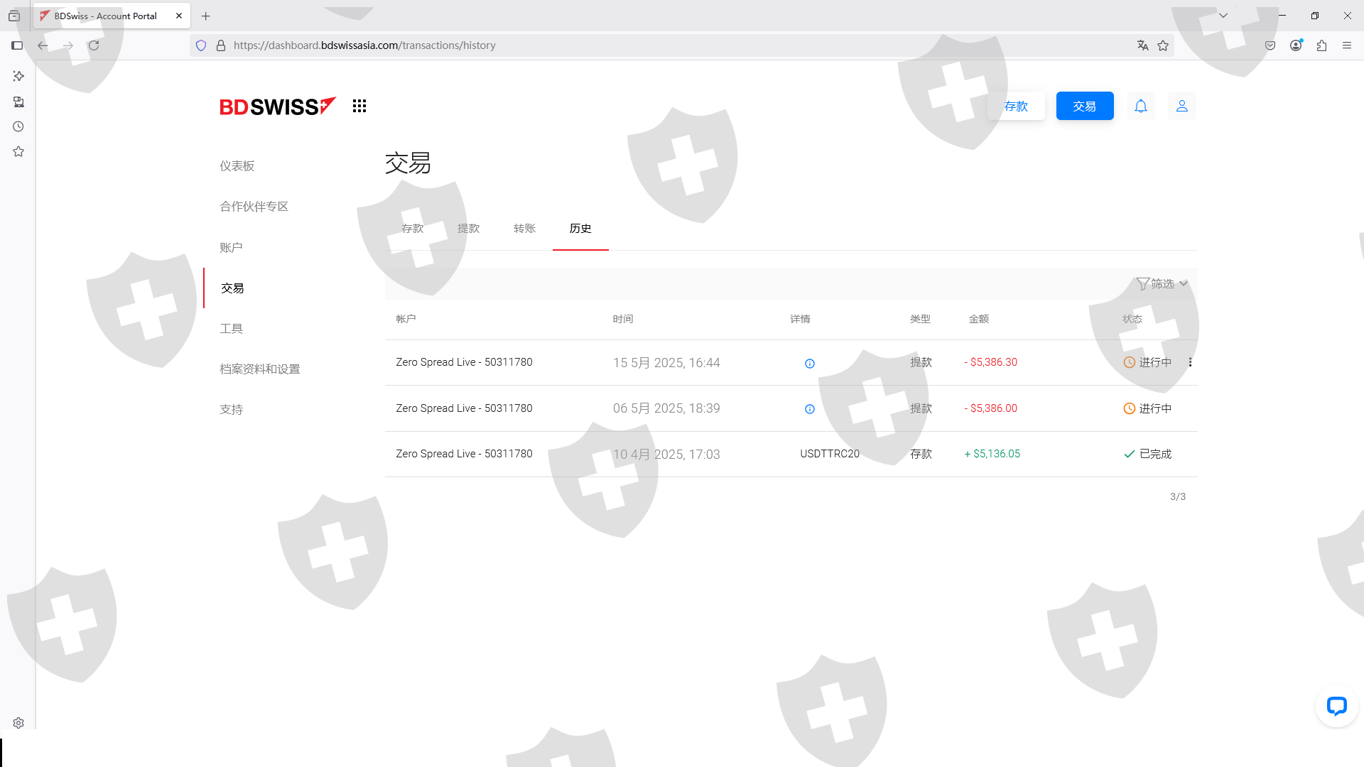 我在25年4月10号在BDSWISS这个平台入金了5136美元,在25年5月多次提交出金,后台一直在审核中,不给通过。现在这个平台是要跑路了,大家不要再往里面入金了,现在只能入不能出!!!!现在这个平台是资金盘了!!!!