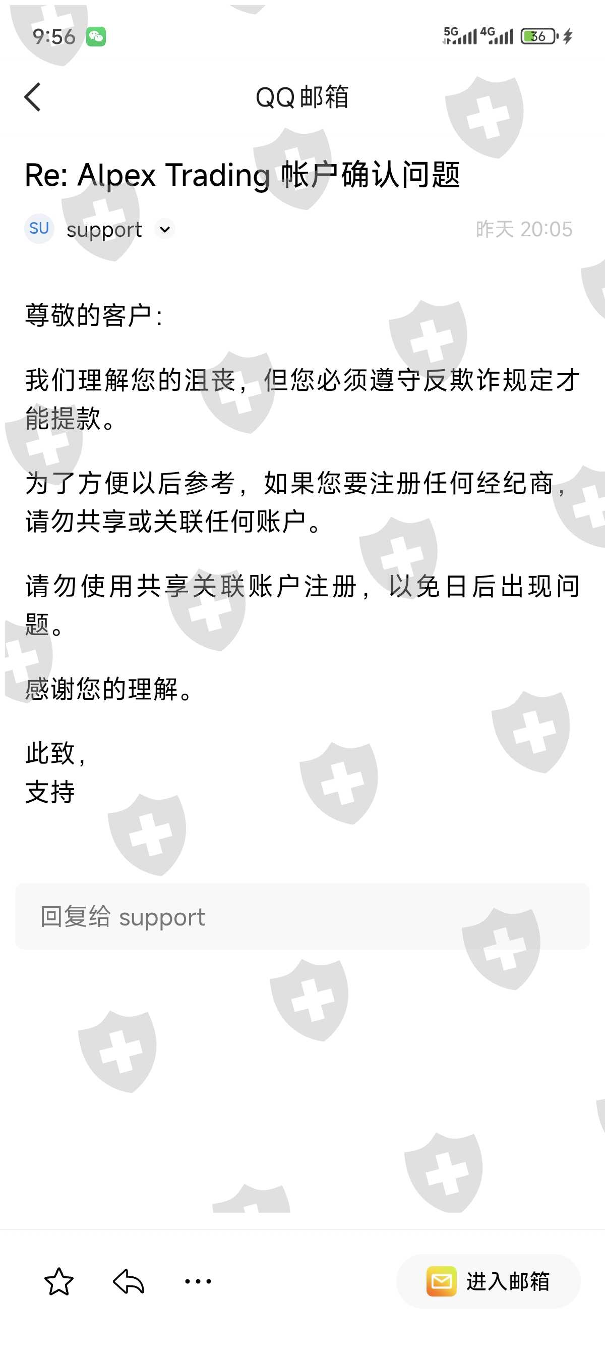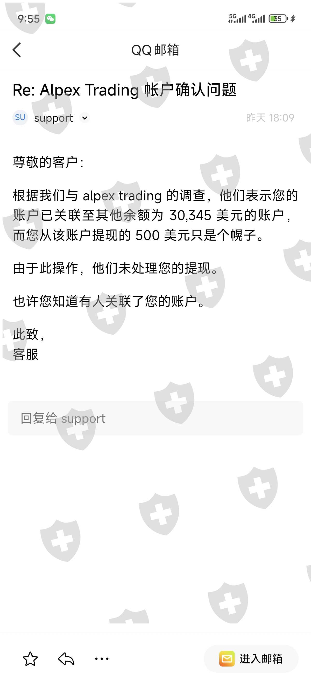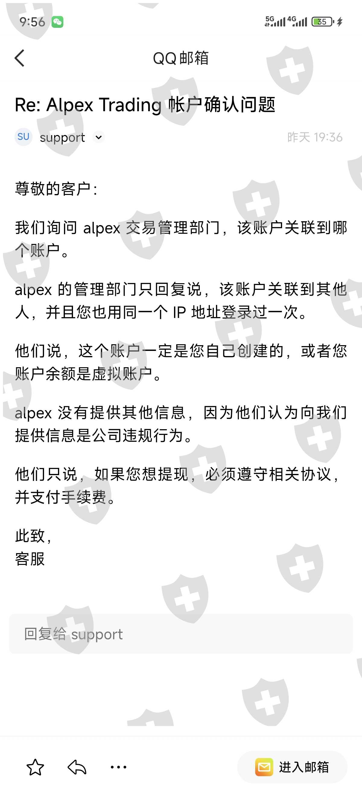 无法出金邮件回复 还污蔑我得账户和其他账户关联,还让我再交2000美金手续费才能出金,在这骗小孩呢,劝大家远离这个平台,不要贪图小便宜