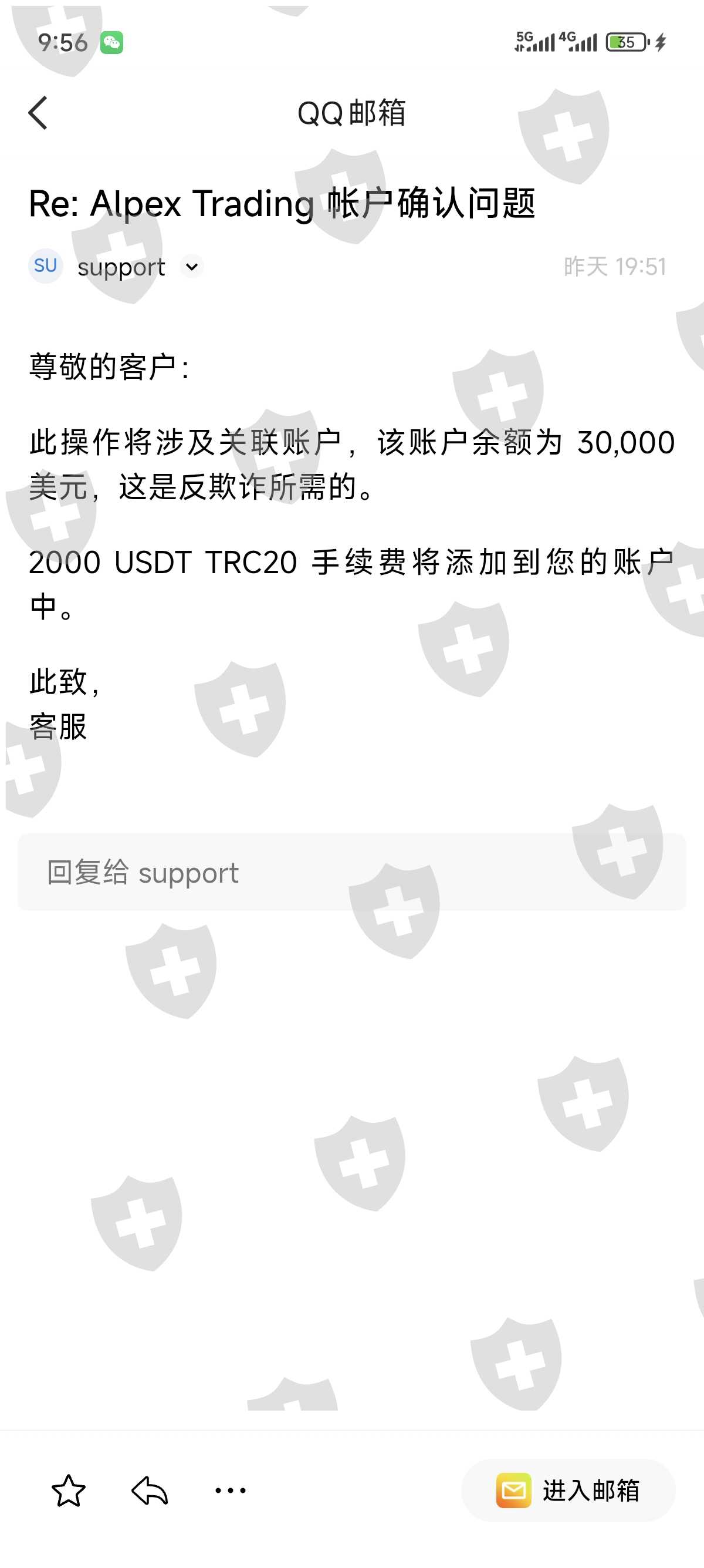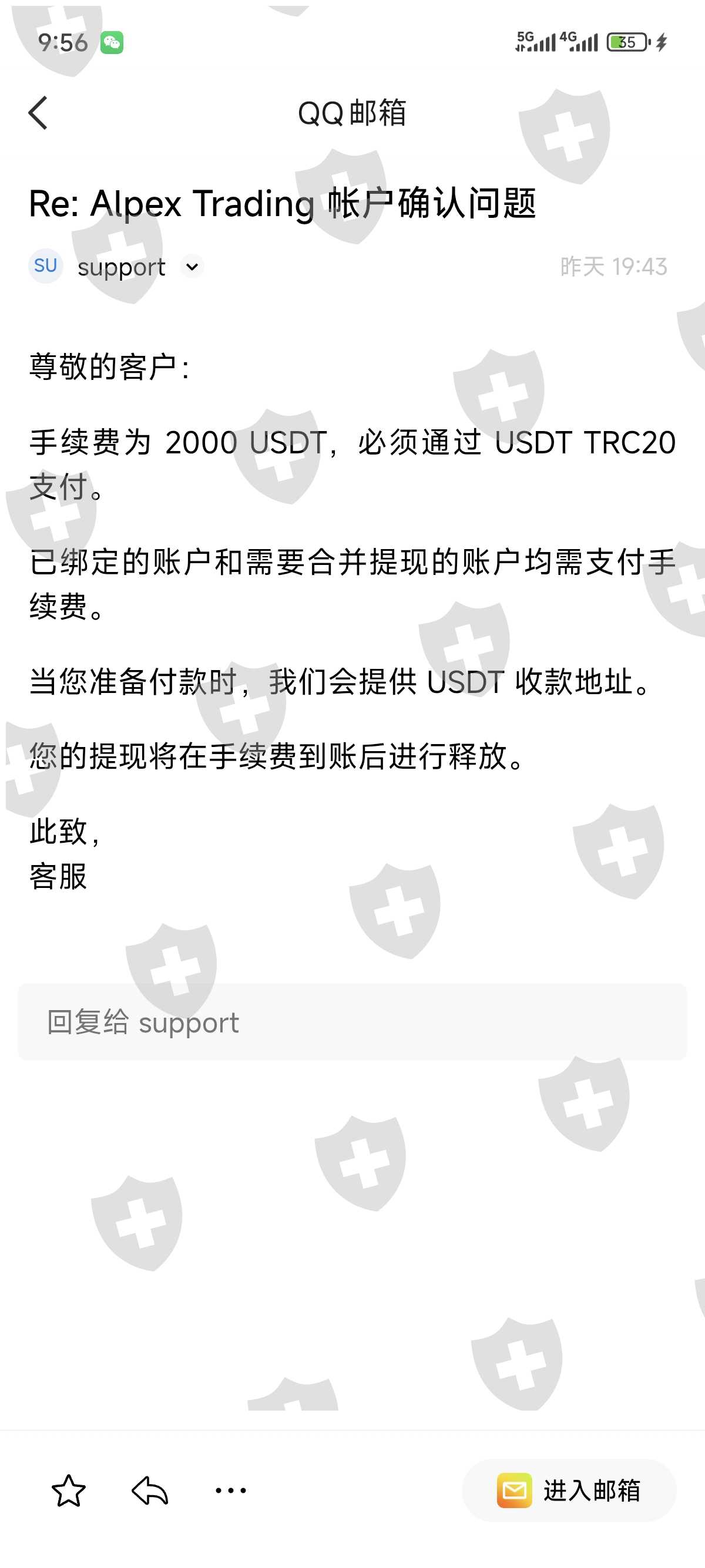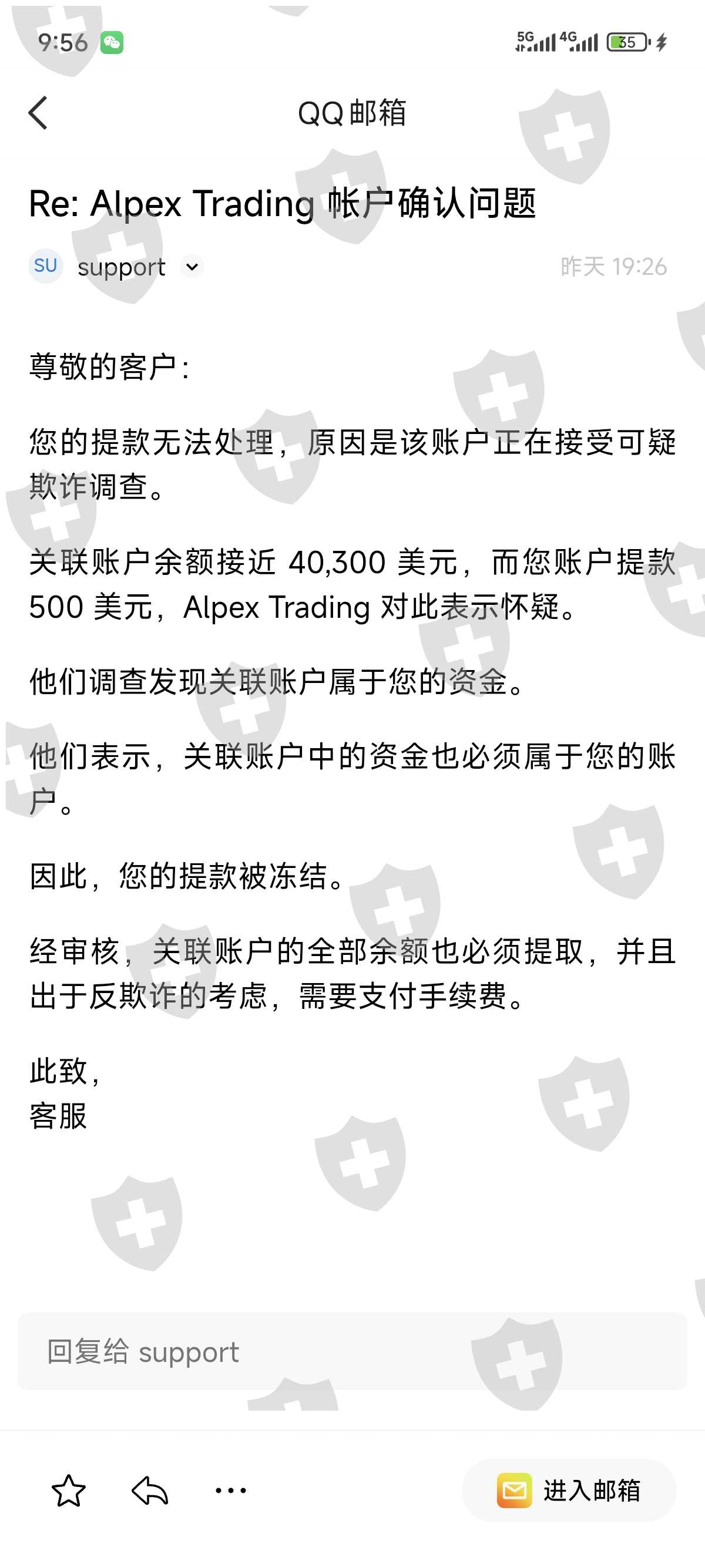 无法出金邮件回复 还污蔑我得账户和其他账户关联,还让我再交2000美金手续费才能出金,在这骗小孩呢,劝大家远离这个平台,不要贪图小便宜