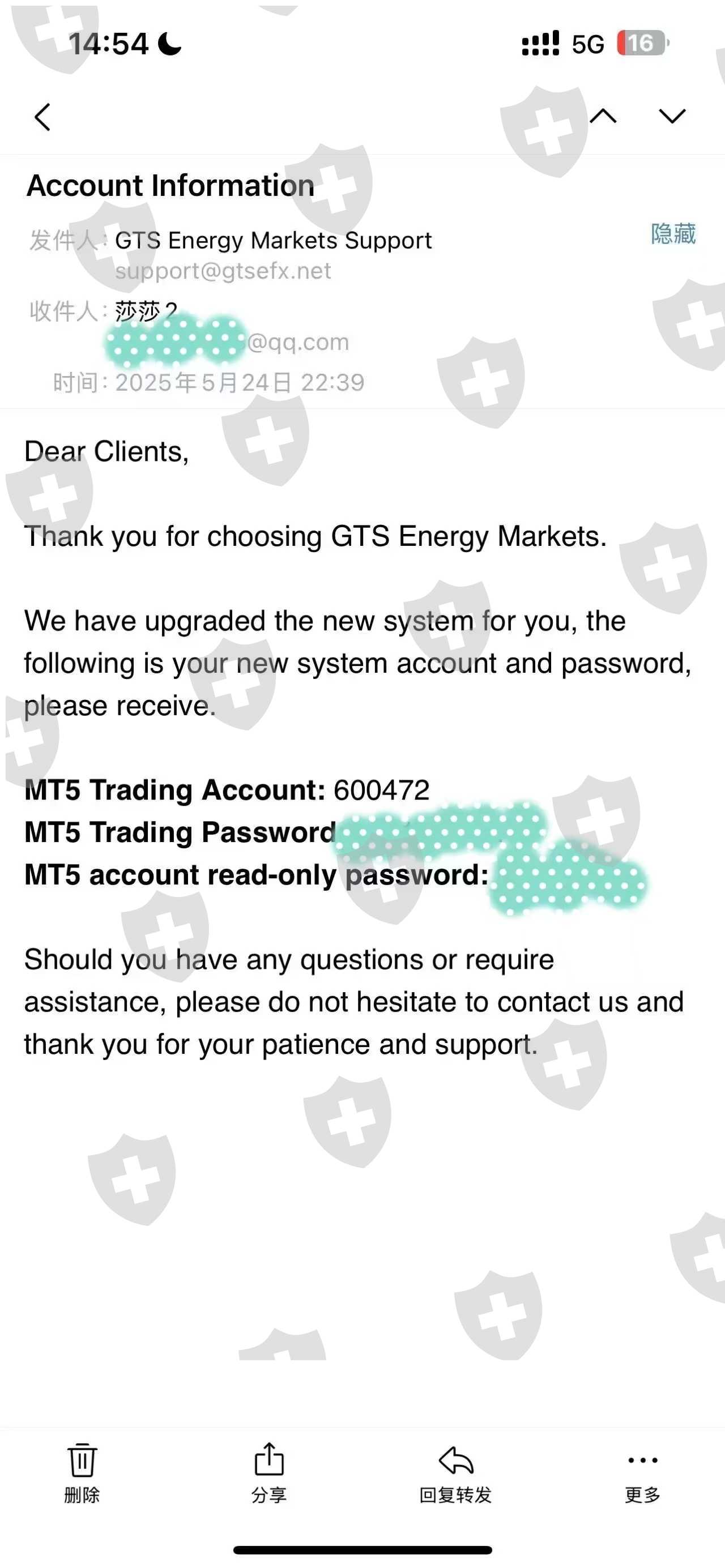 尊敬的平台:GTS在2025年4月30日把我老系统313252换成了8字开头的系统,又在2025年5月24日,换成了6字开头的系统,他们有联系国内团队长说把资金调到新系统上,原来帐上的资金数据变成了信用分无法提现,国内平台负责人找不到,恳请平台要回我的本金。