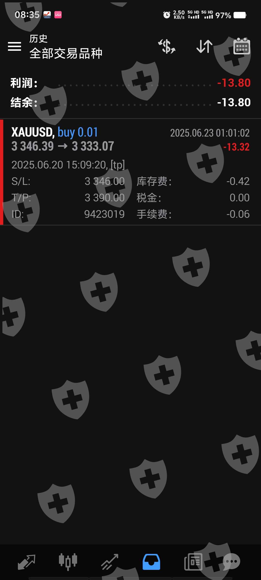 上周五在3346的多单,今天一早高开3394,本来该止盈的,却在3333止损了,行情根本就没到过3333,滑点60美金,这妥妥的骗子平台,大家赶紧出金换平台吧