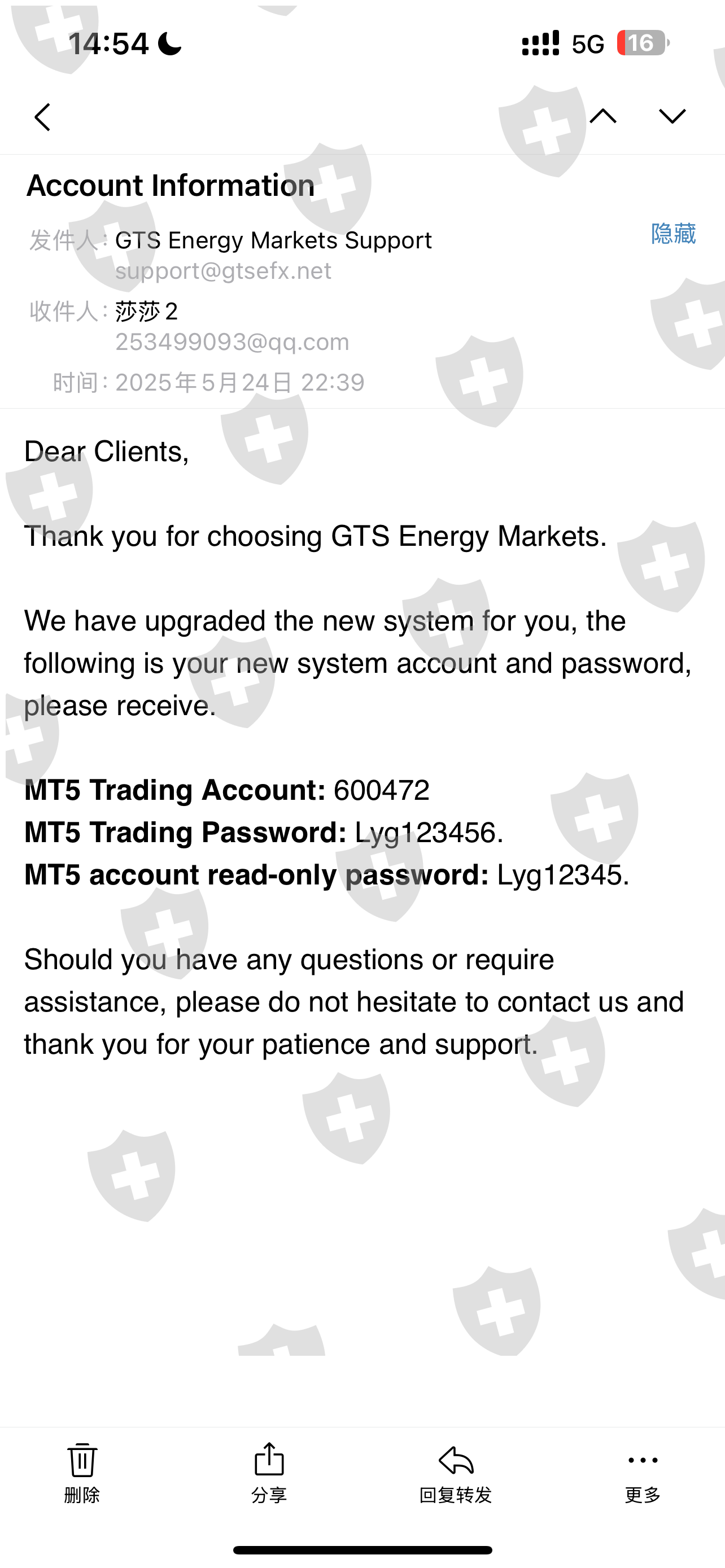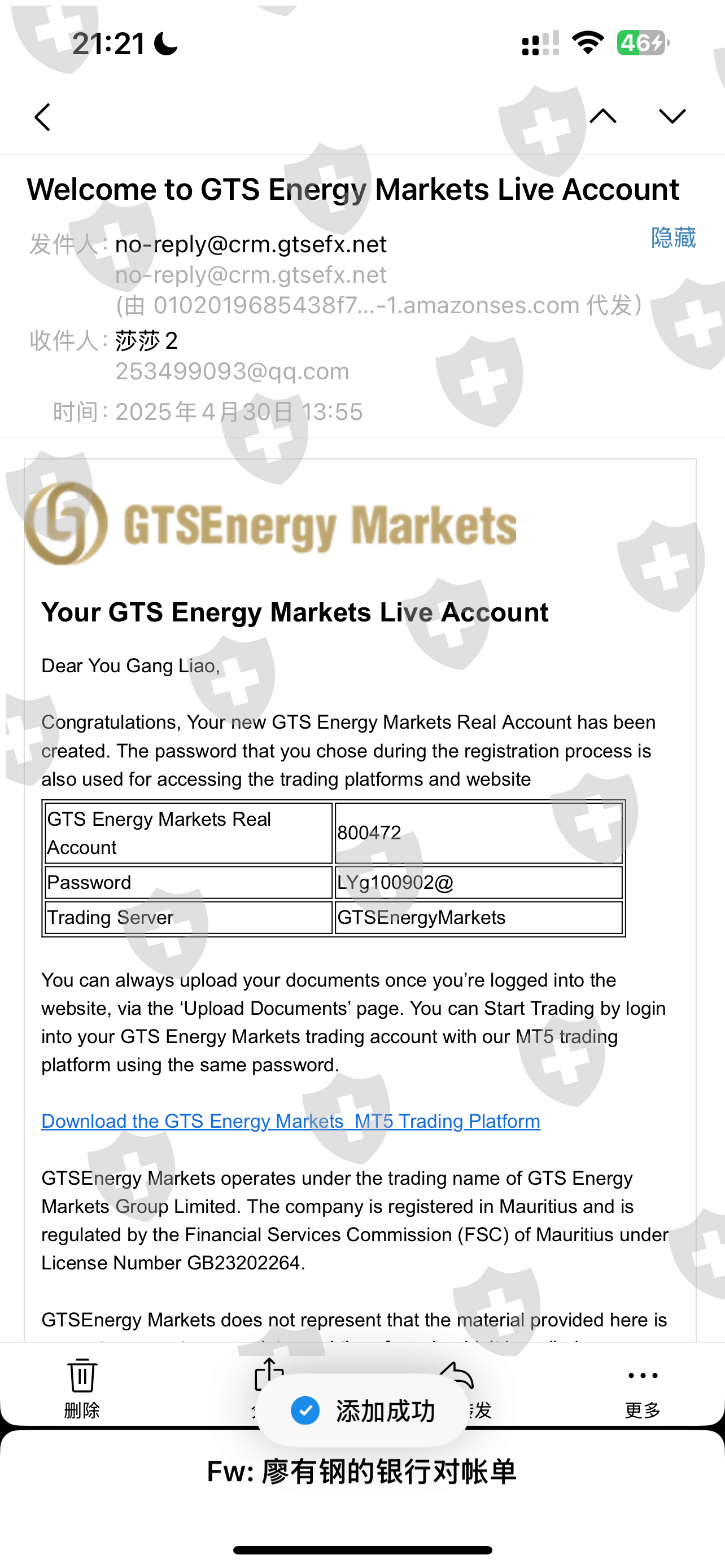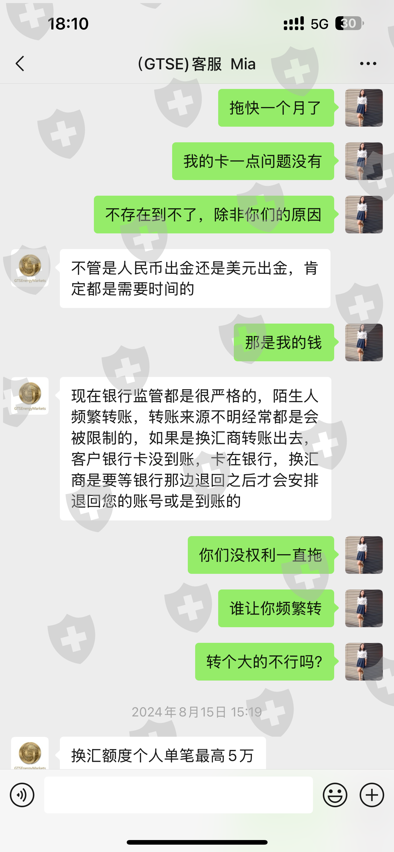 券商就是GTS,在大陆对接我们的是个台湾人,还有一个聂灿求,他们在我要求出金时不给我出金,我原有帐户 313252,有资金30402usd,他们不给我出金,说是大帐户在海外冻结,不能出人民币了,要换成出u通道,券商给开了新的帐户600472,说是把资金从老帐户313252迁移到新帐户600472,后来313252无故出金,显示在600472帐户上的是信用额度,结余没有了,帐户是GTs开的,客服是GTS的,邮件是GTS发的,这是券商伙同骗子合伙诈骗,要求GTS券商退回我的钱还给我。