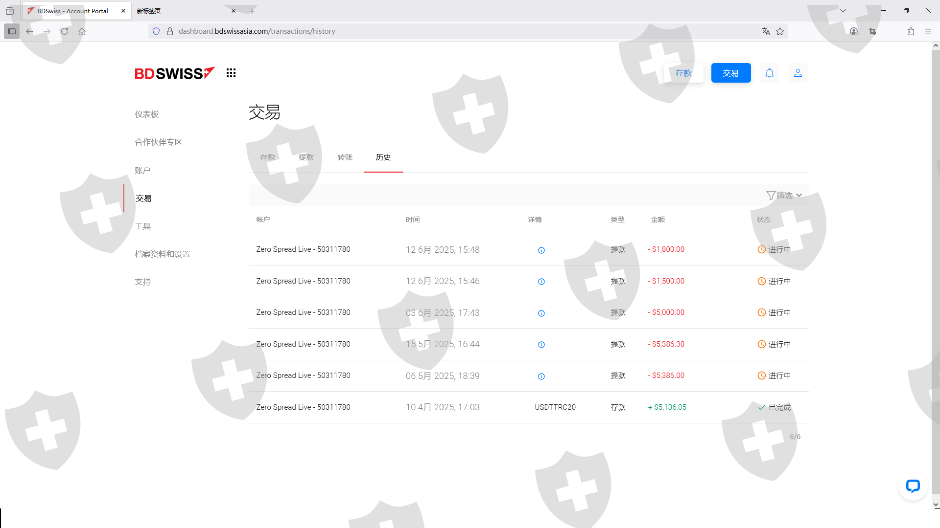 我在BDSwiss(原网址mau.bdswiss.com和https://eu.bdswiss.com/zh/)平台开设的MT4账号是50311780,我在2025年4月10日入金5136.05美金,总共盈利250.25美金,我于2025年4月14日提交5386.3美金出金,