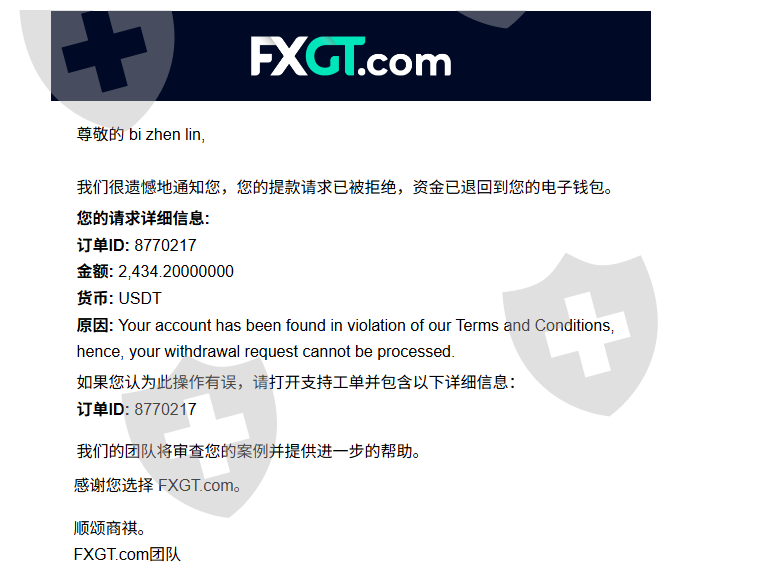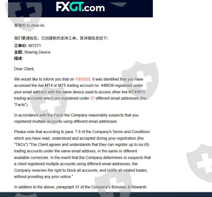 本人是FXGT用户(账号:448639),特此投诉贵平台在未提前告知、未提供合理解释的情况下,擅自删除我的账号,并扣除我账户内资金(资金:1957.11),严重侵害了我的合法权益。