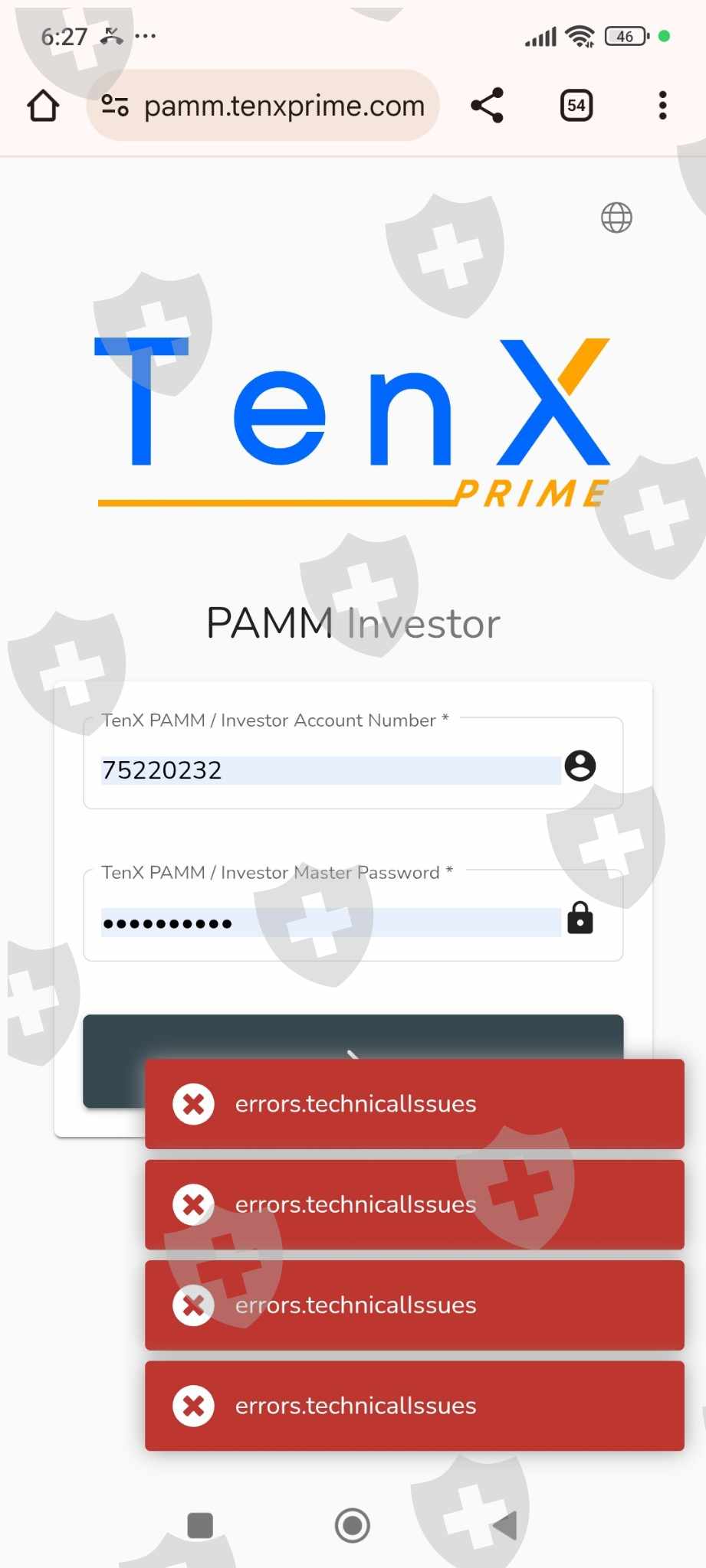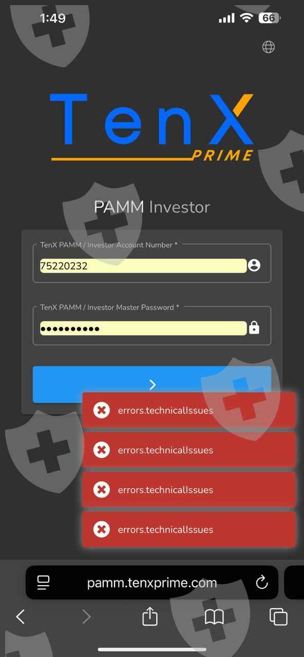 此外,自 2025 年 10 月 2 日起,我一直 无法登录 TenX Prime PAMM 投资者网页: