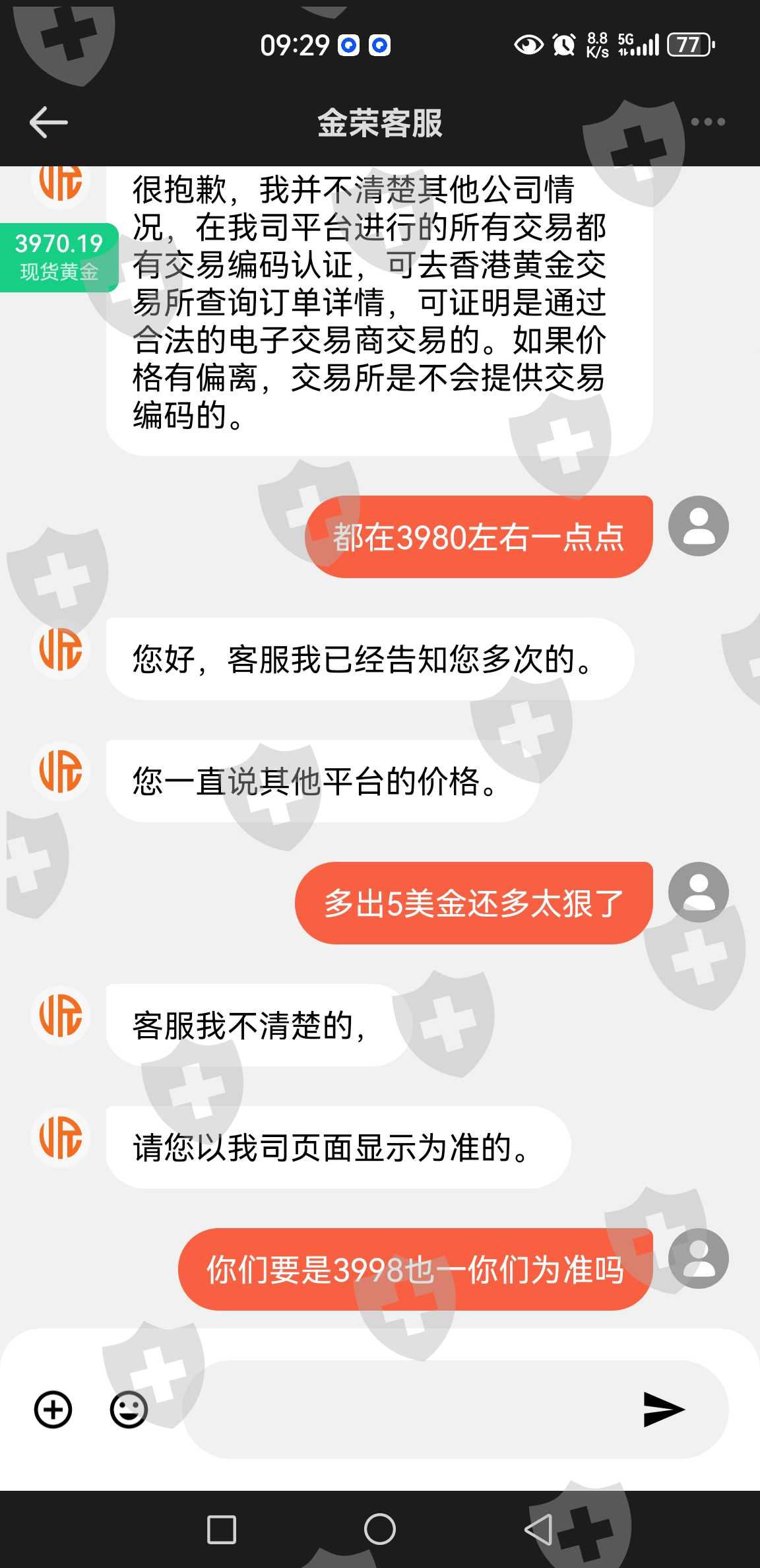 这家平台是黑平台违规操作,不按市场价格开走,随意更改价格,之前没注意,就11.6号早上七点开盘感觉不对劲,他家平台上下突然上下扫盘,最高3985.51,伦敦银更离谱11月六号早上七点开盘上下扫盘一分最高点在48.595,我的仓位本来买得都是卖盘,上午可以盈利一倍多的,他的假数据直接把我扫损,这一天我才发现他们是黑平台